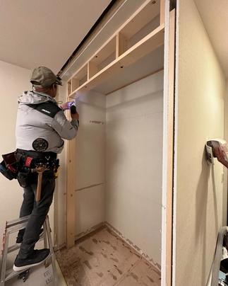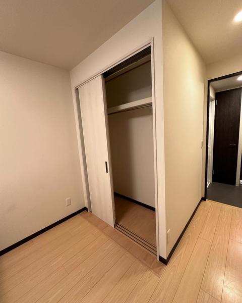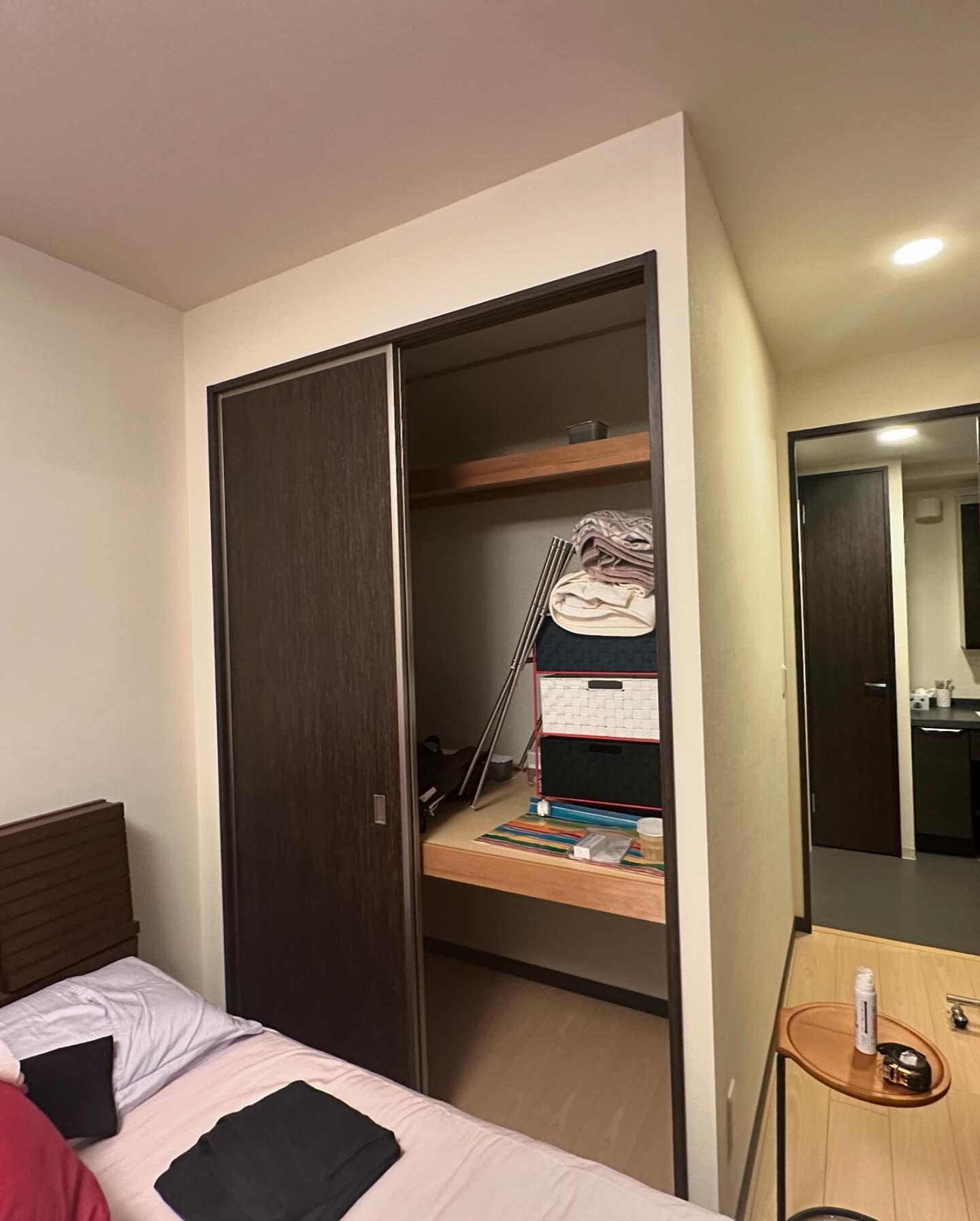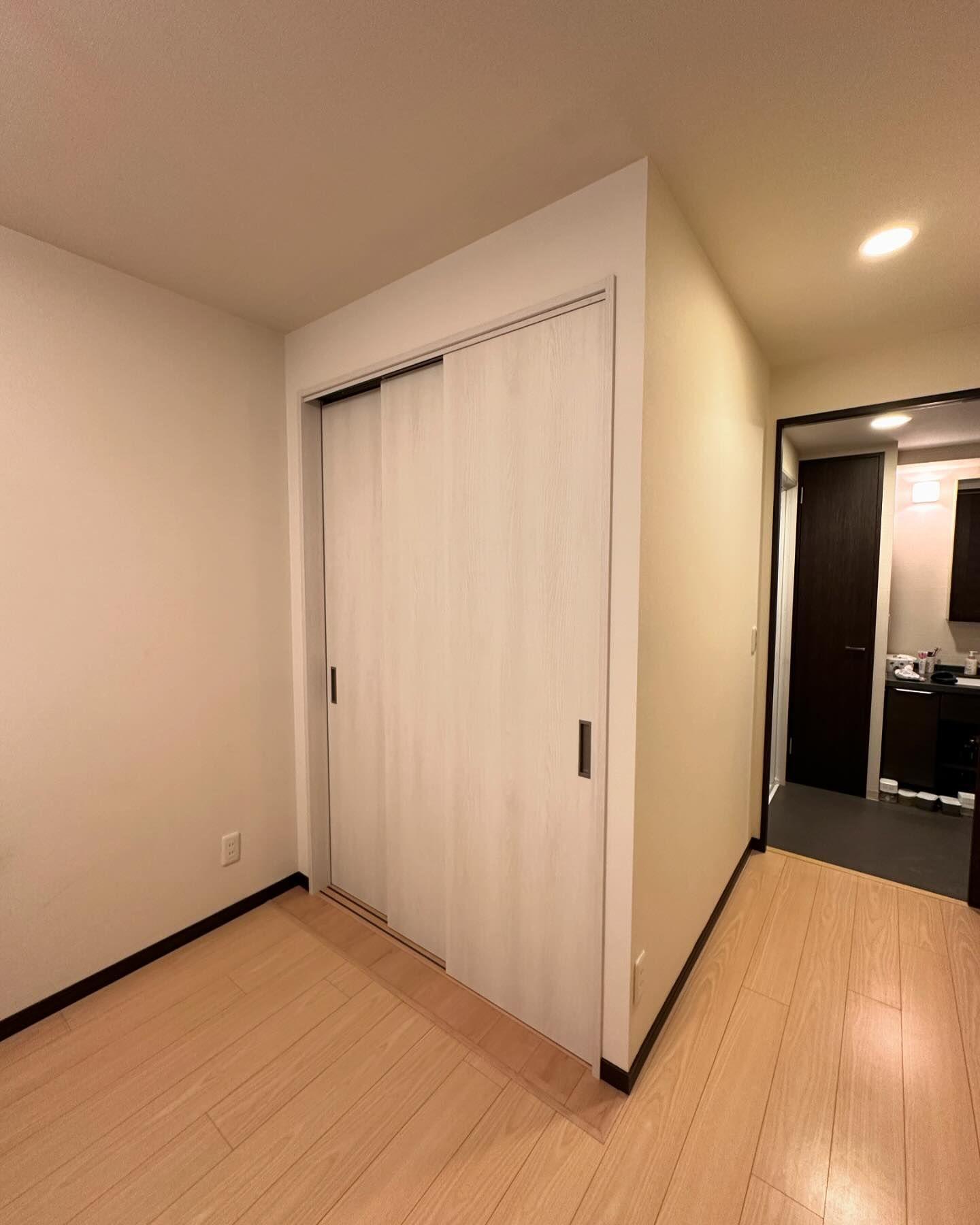 押し入れをクローゼットに 3枚連動引き戸(LIXILラシッサS) 奥行を15cm縮めてお部屋を少し広く パイプ付き棚(南海プライウッド)