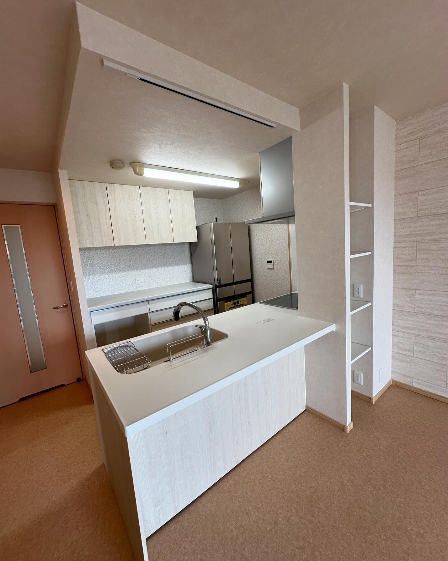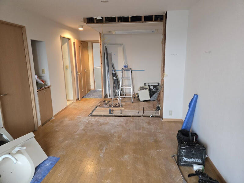 垂れ壁吊戸棚を撤去してすっきりセミオープンキッチンに