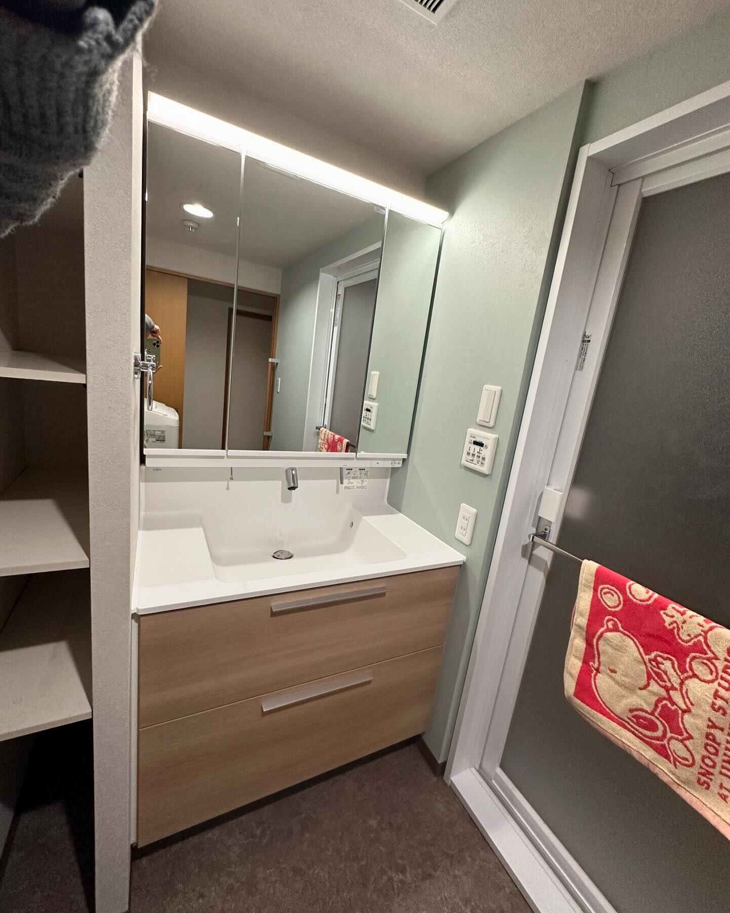 ・洗面化粧台交換(LIXILクレヴィ) 扉カラー:ライトオーク