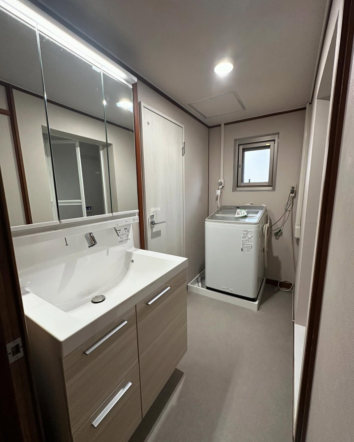 ・洗面化粧台交換(LIXILクレヴィ500) 扉カラー:ライトオーク ・トイレ交換(LIXILアメージュ) ・玄関収納交換