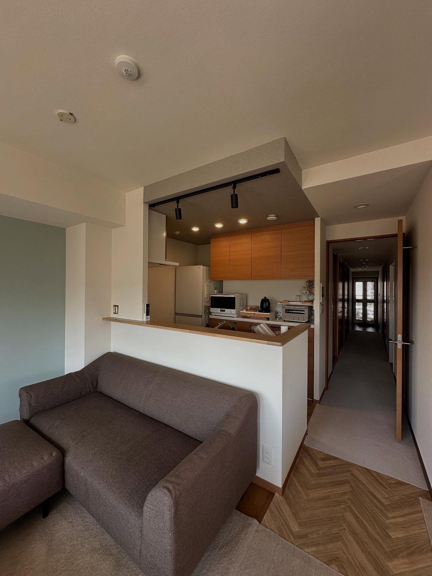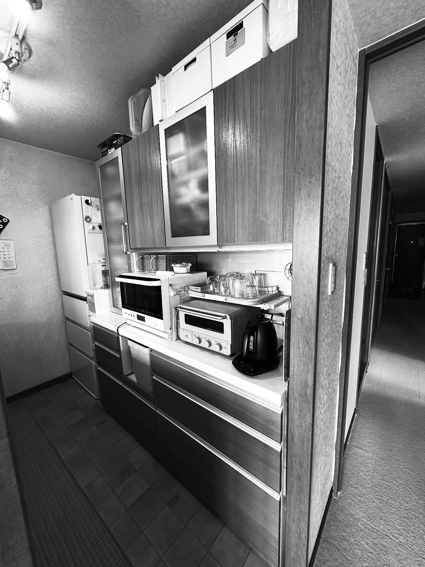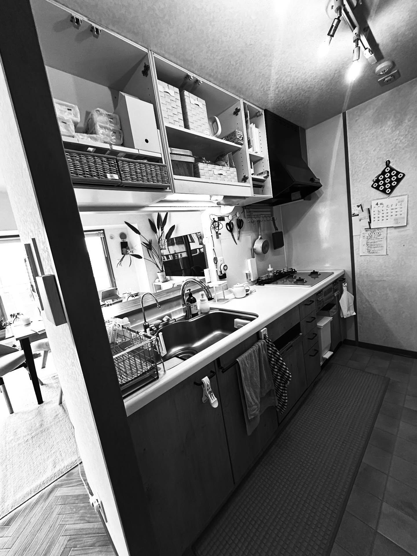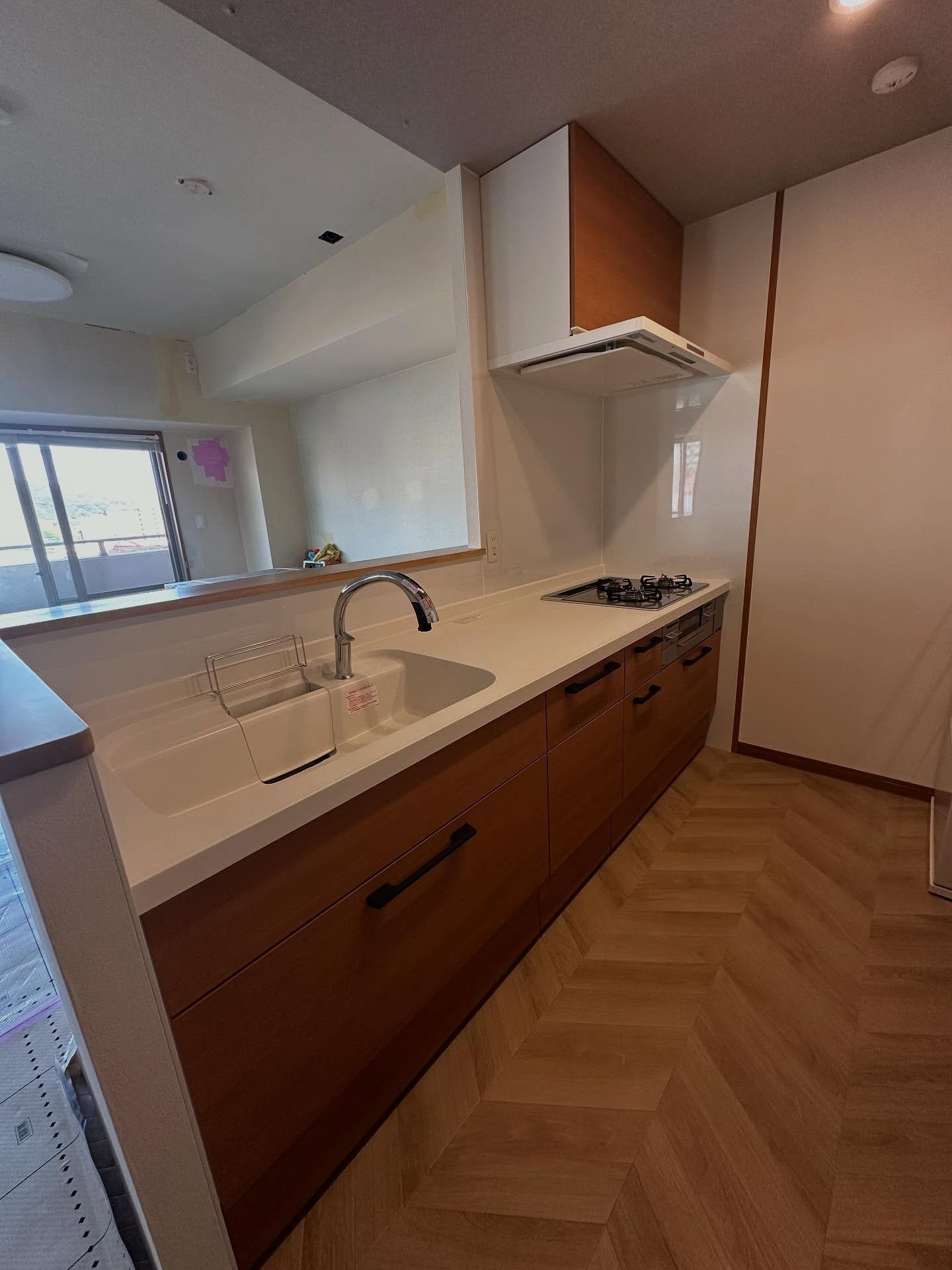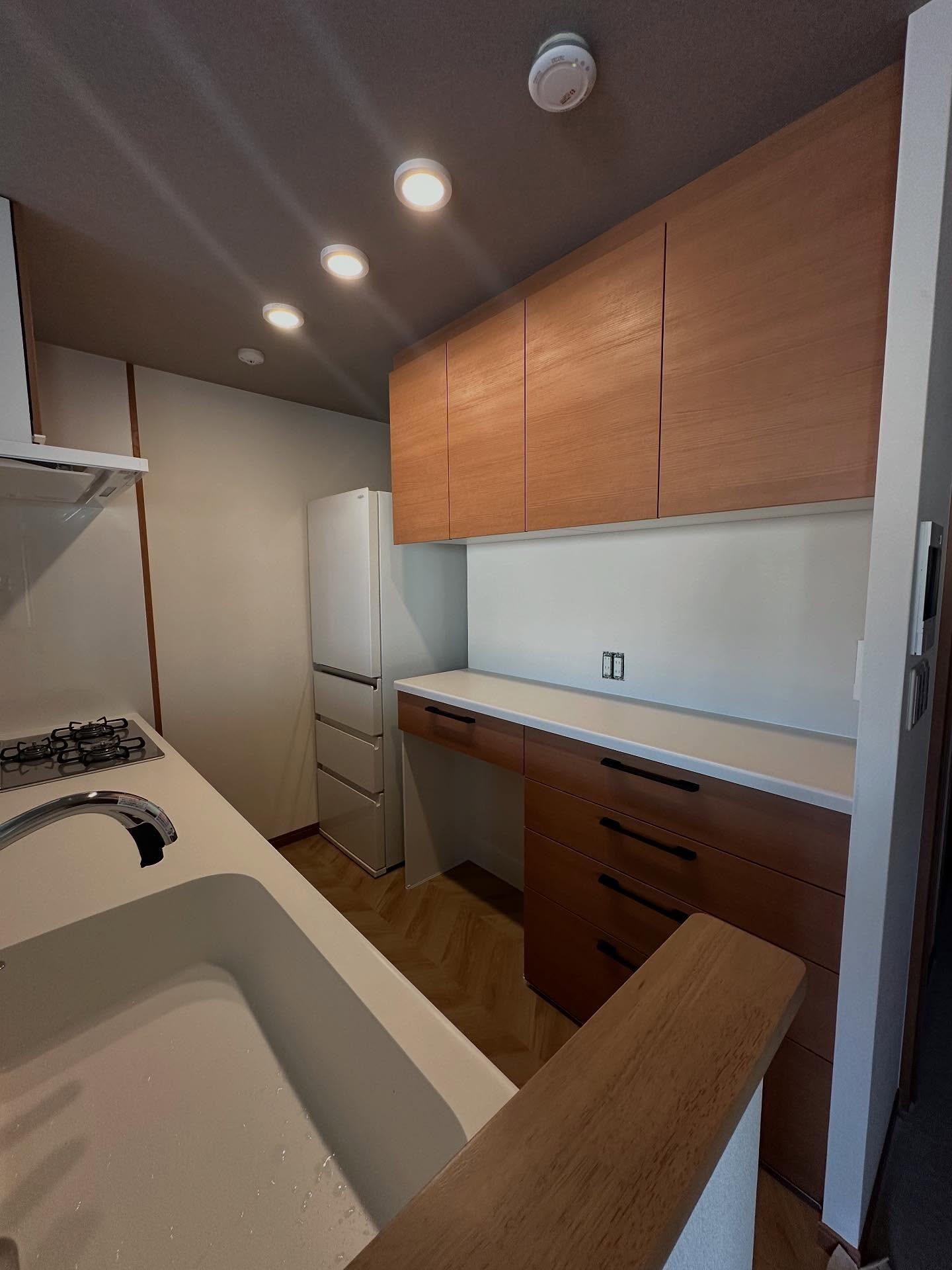 ・キッチン LIXILノクト 扉カラー:クリエラスク 垂れ壁(吊戸含む)袖壁撤去で解放感! カップボード交換 ダクトレール設置 内装貼り替え アクセントクロス/クッションフロア