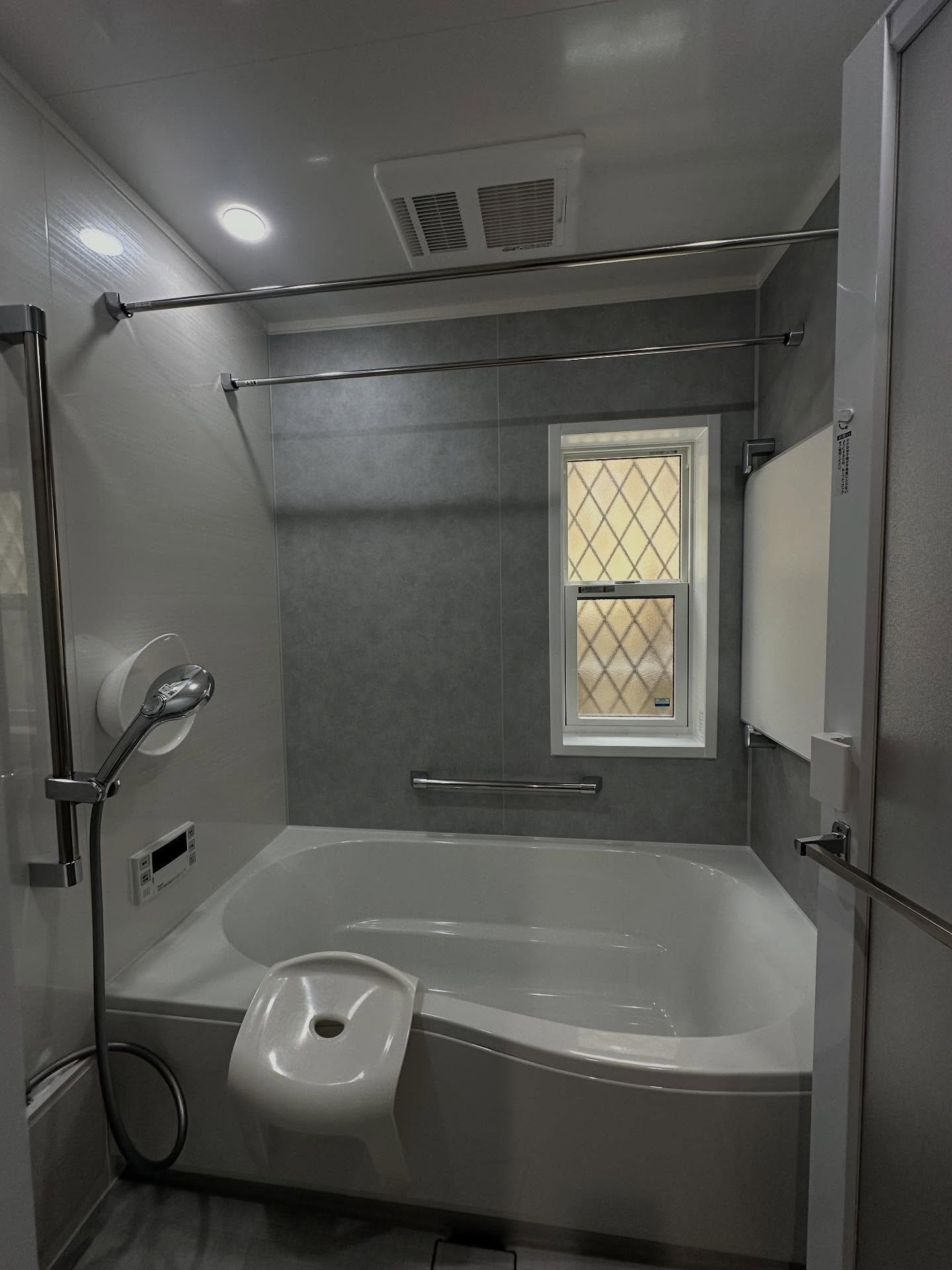 ユニットバス交換(LIXIL リデア1616) パネルカラー:シャインウッドホワイト/シルバーグレー 浴室外窓交換(YKK AP カバー工法)