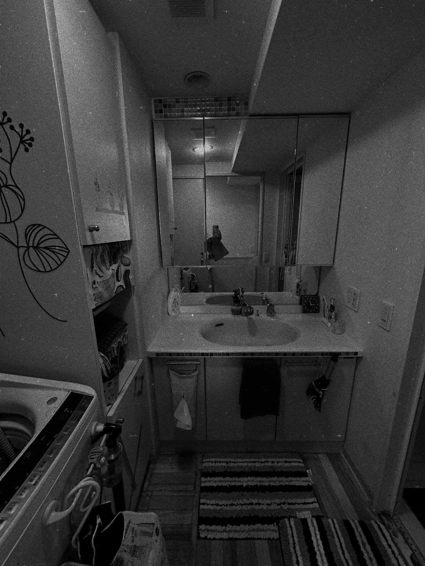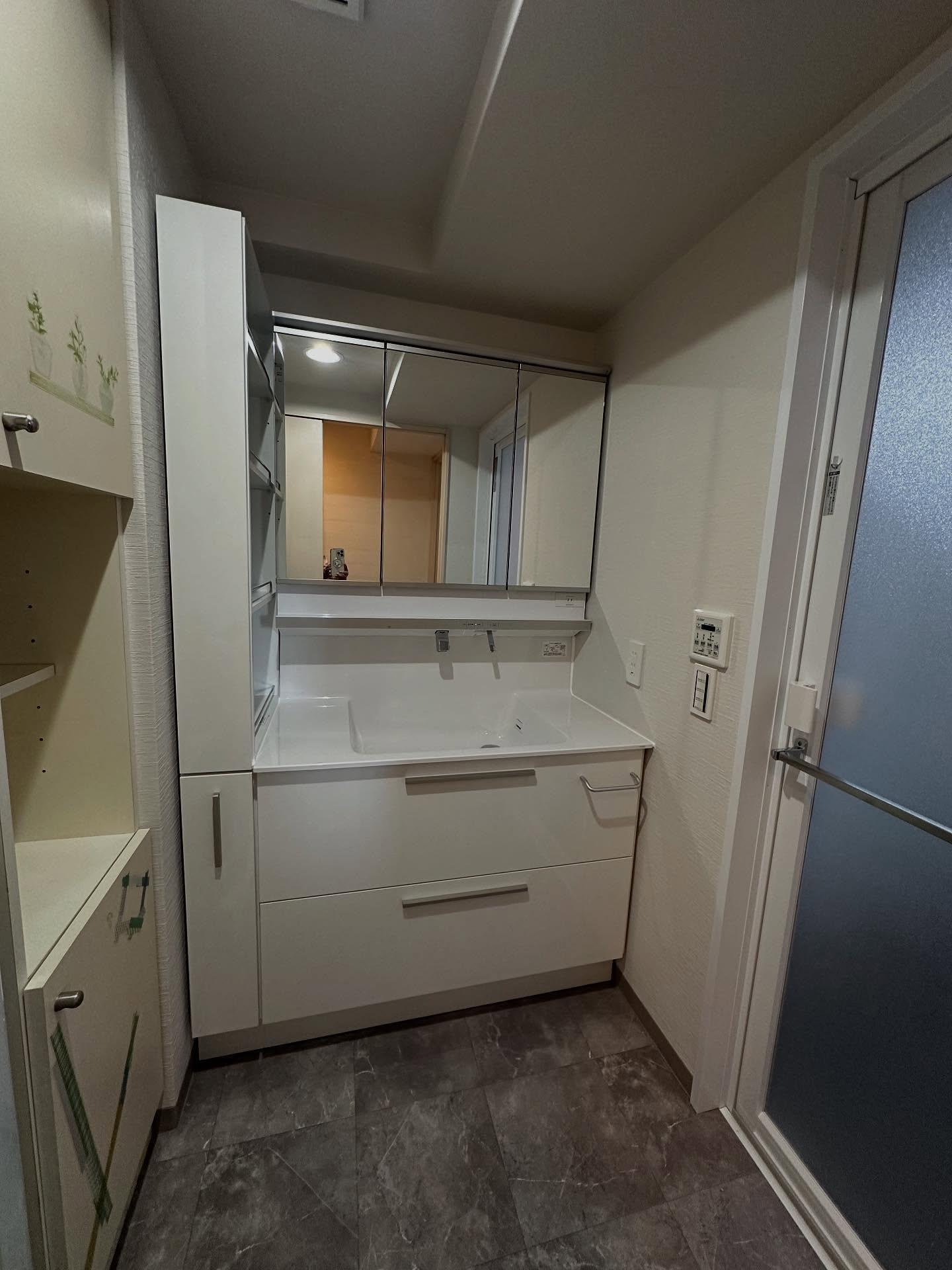 洗面化粧台交換(TOTOオクターブ) クロス・クッションフロア貼り替え
