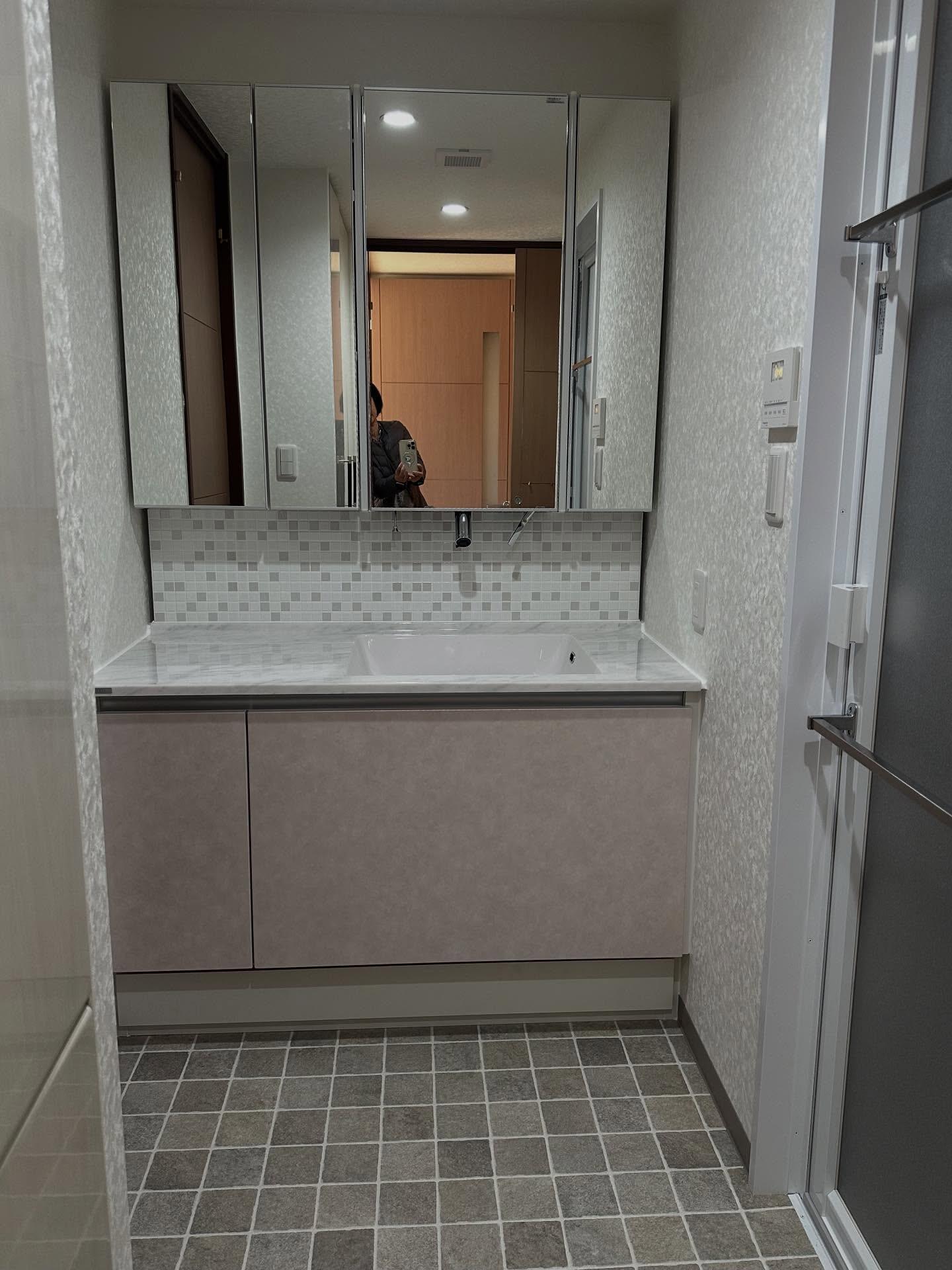 バックパネル:モザイクタイル(ニュアンスミックスホワイト)