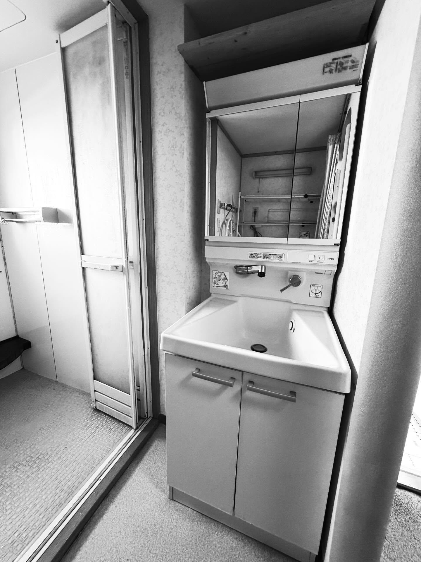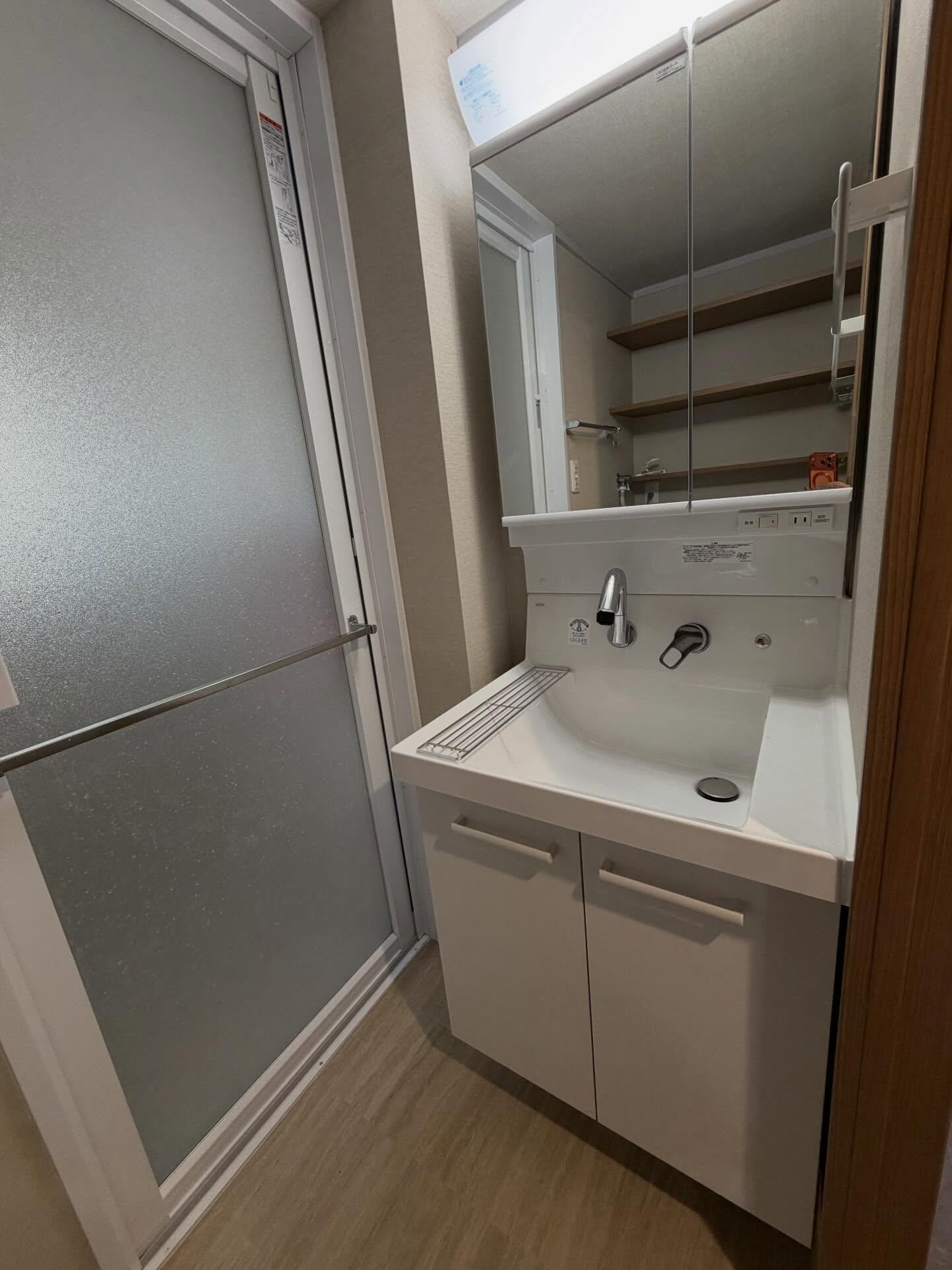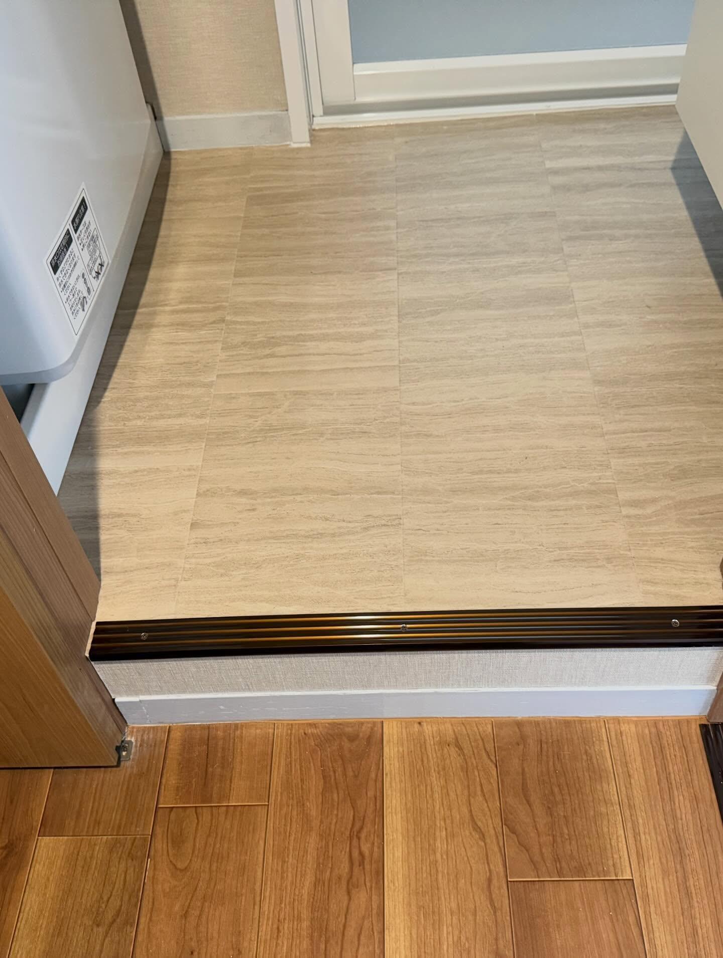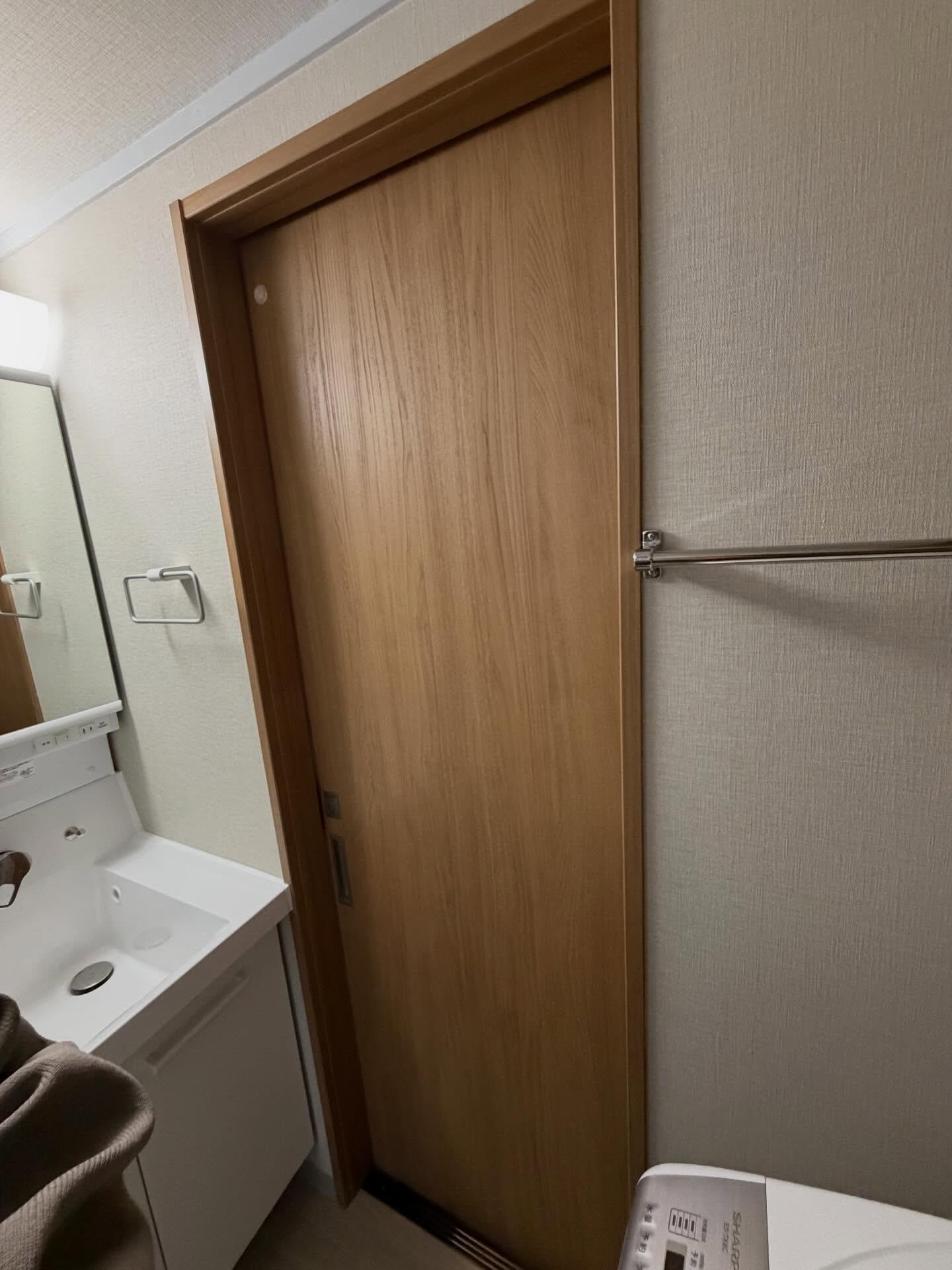 玄関ホール横、 洗面脱衣所入口に アウトセット引戸を設置 (LIXIL ラシッサS)