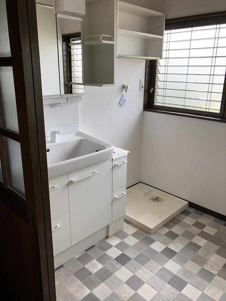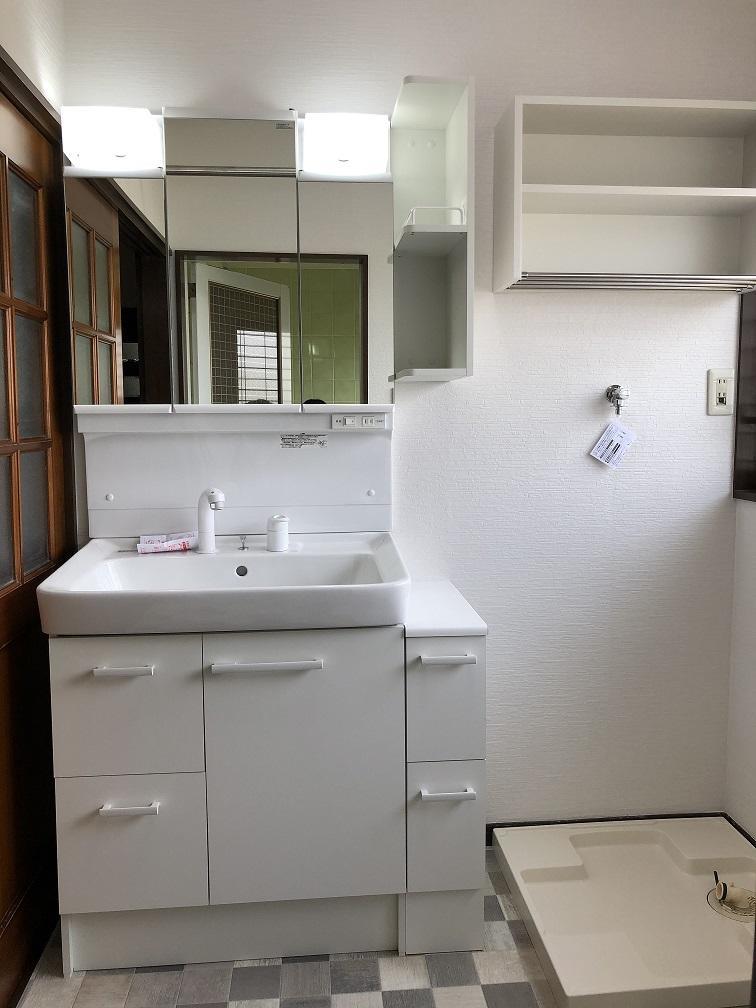 洗面台水栓からの水漏れが止まらなくなってきてしまったとのことで、ご来店頂きました。この機会に洗面所全体のリフォームをご検討。