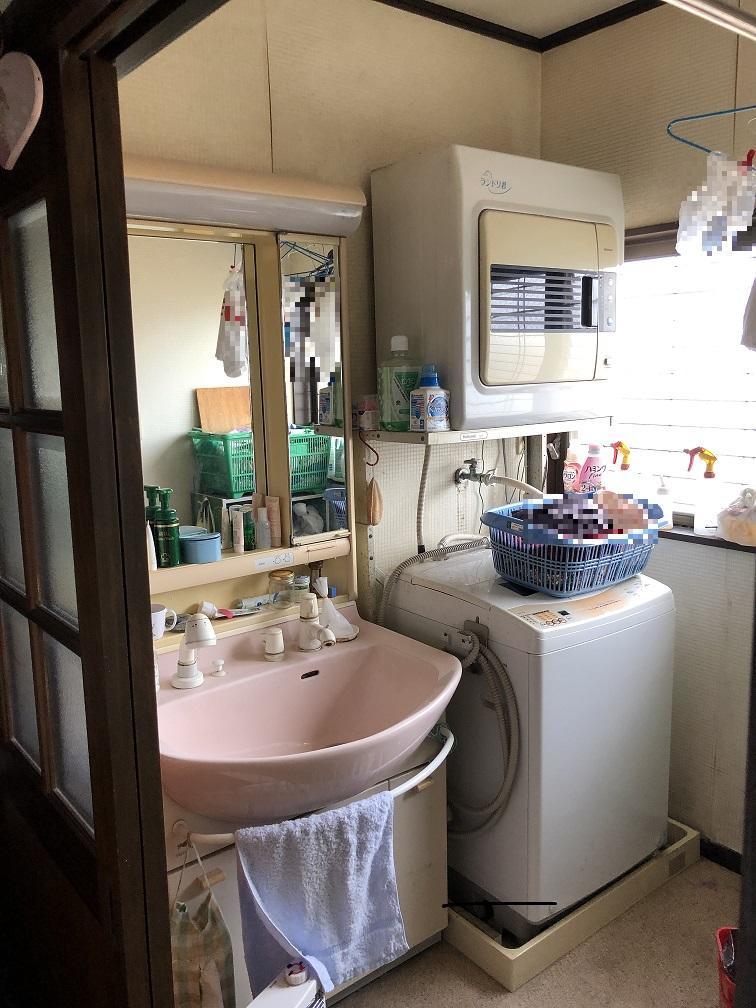 ご使用機会がなくなった乾燥機を処分し洗濯機パンを小さくして、収納キャビネット設置のご提案をさせて頂きました。