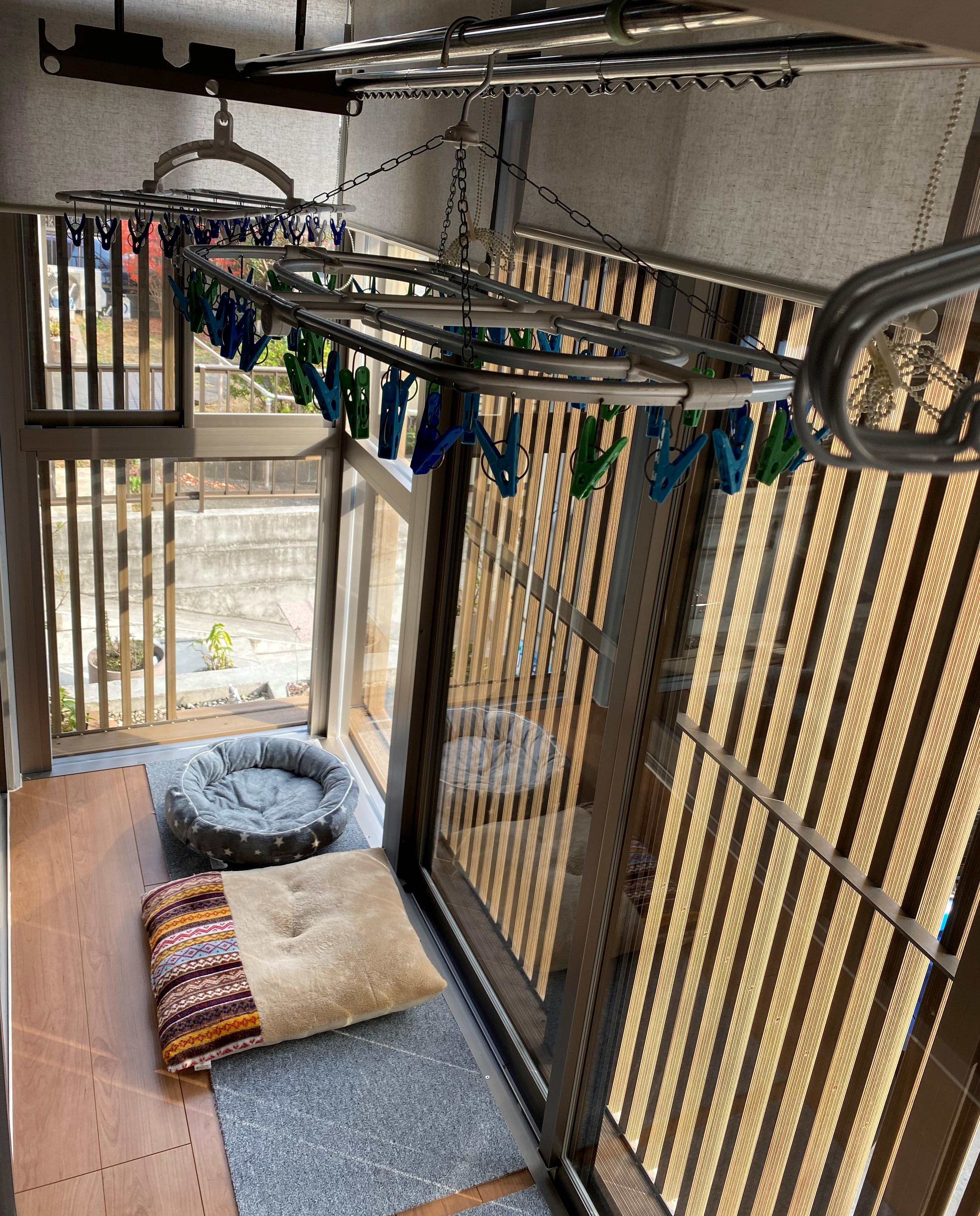軒下にある洗濯物干し場はネコちゃんお気に入りのスペースでしたが、冬は寒くて、夏に虫が入ってくるので、猫ちゃんの出入りの度に窓を開け閉めするのが億劫でしょうがありませんでした。