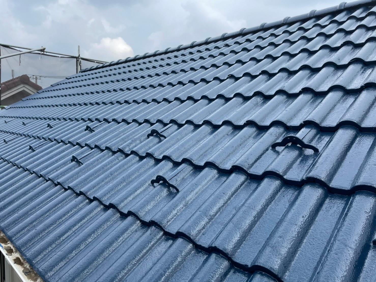 今回はお好きな色に変えたいとのご要望でしたので、青空に合うスッキリとした青色の屋根へと綺麗に仕上げさせていただきました。