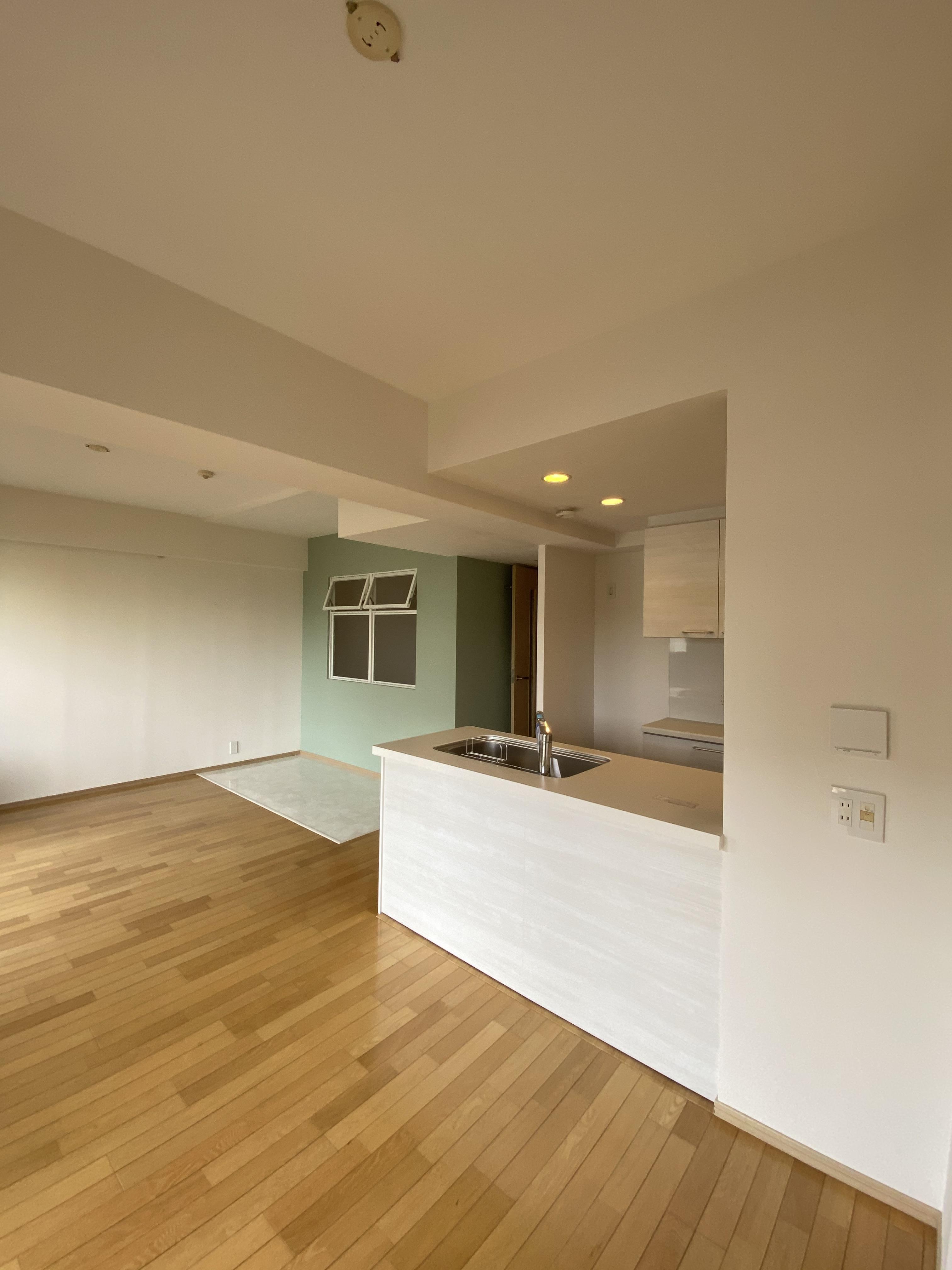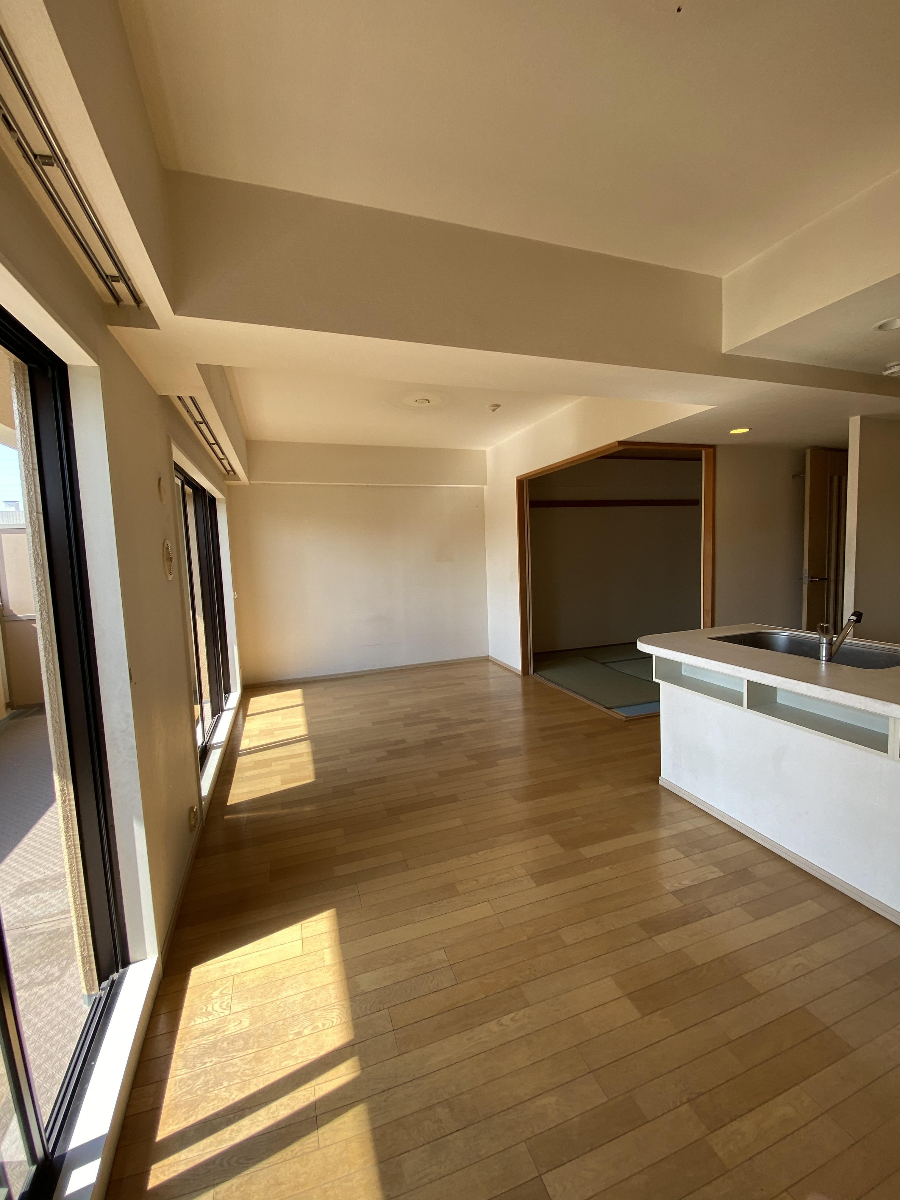 マンションのご入居前に、間取り変更と設備交換のリフォーム工事を承りました。リビング横の和室を少し小さくして、家族が集まるリビングを広げるご提案をさせていただきました。