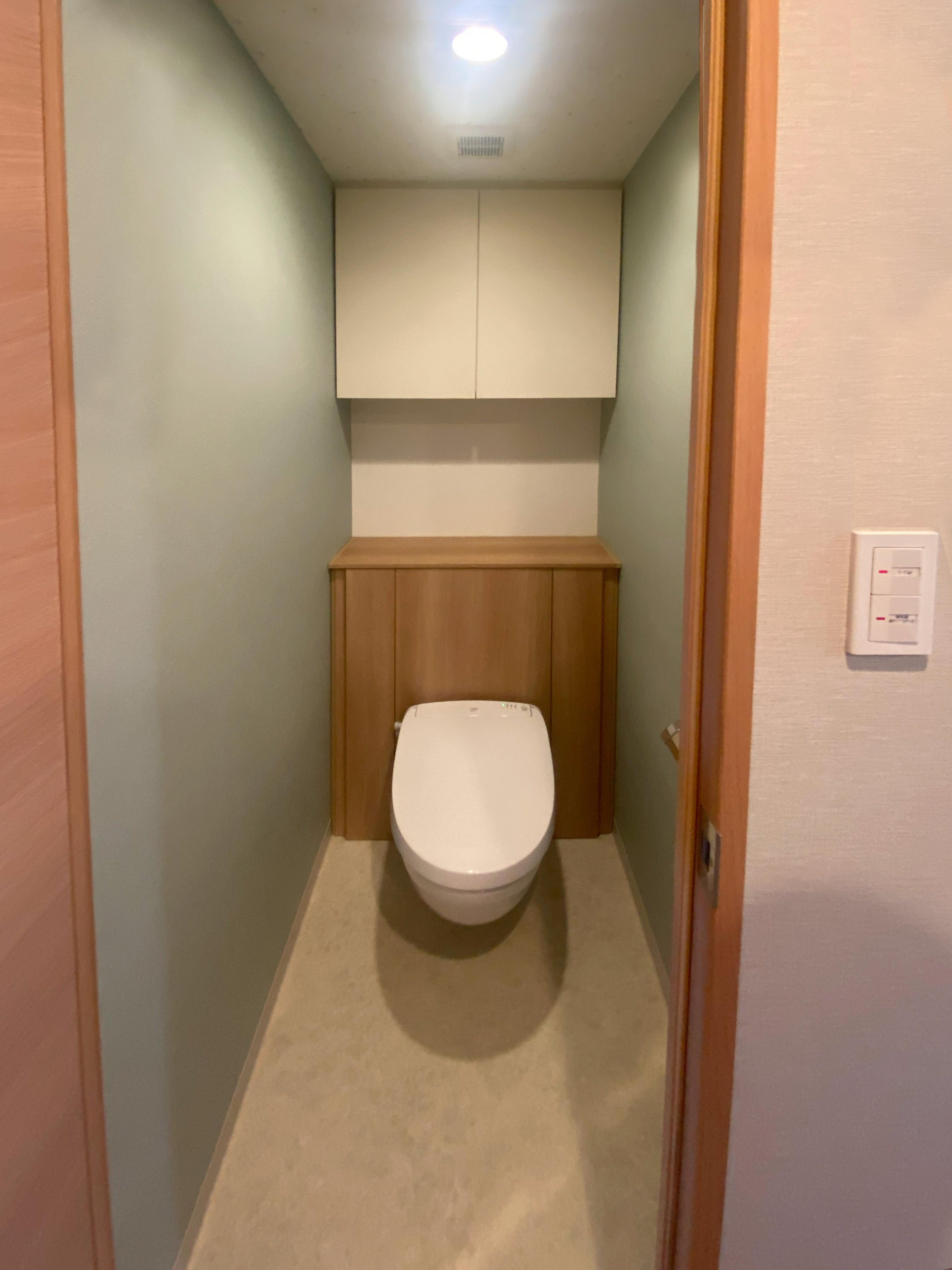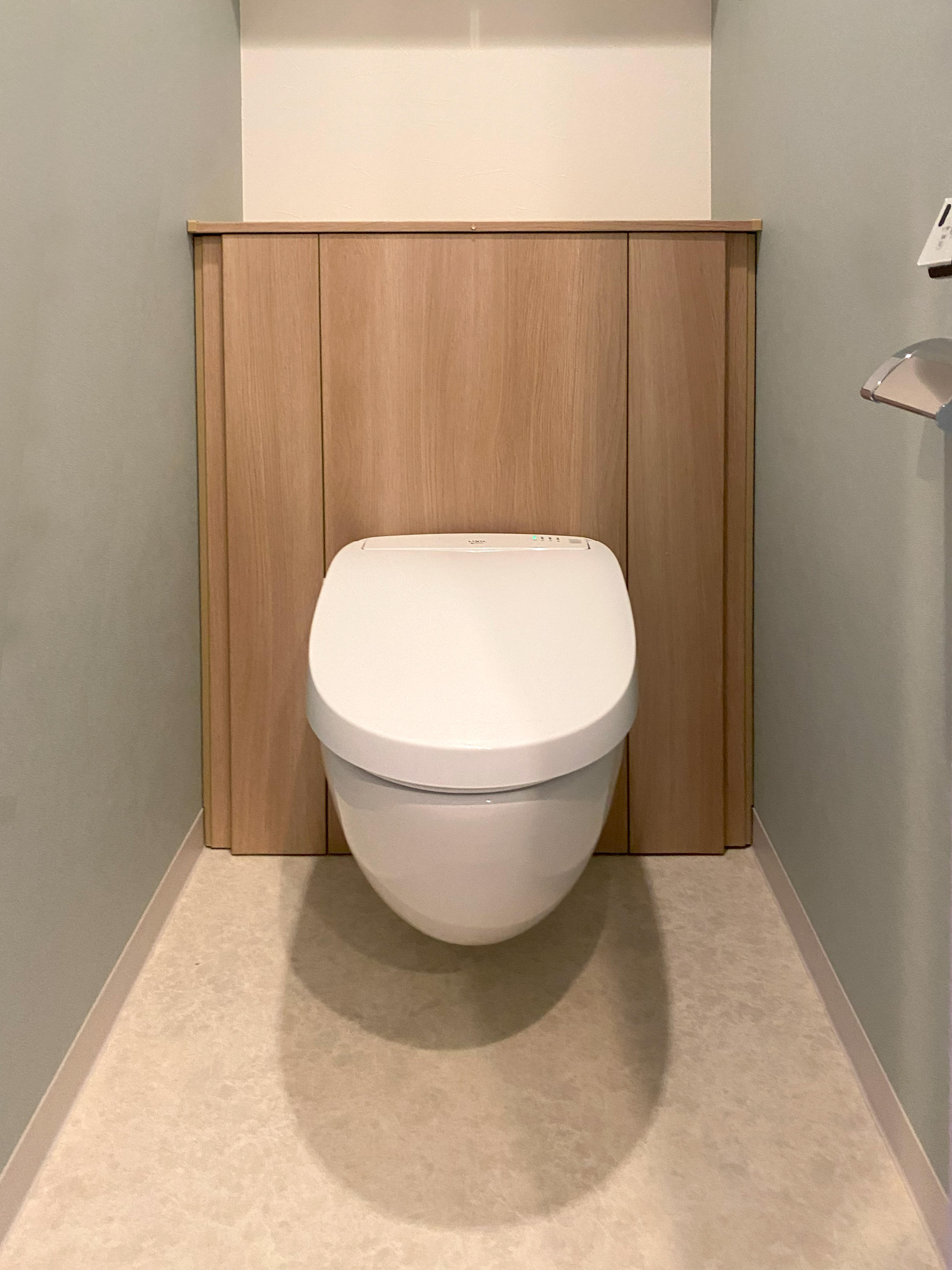 フロートトイレの仕様が新しくなって幅広対応できたため、キャビネットもすっきりと仕上げられて嬉しく思います。