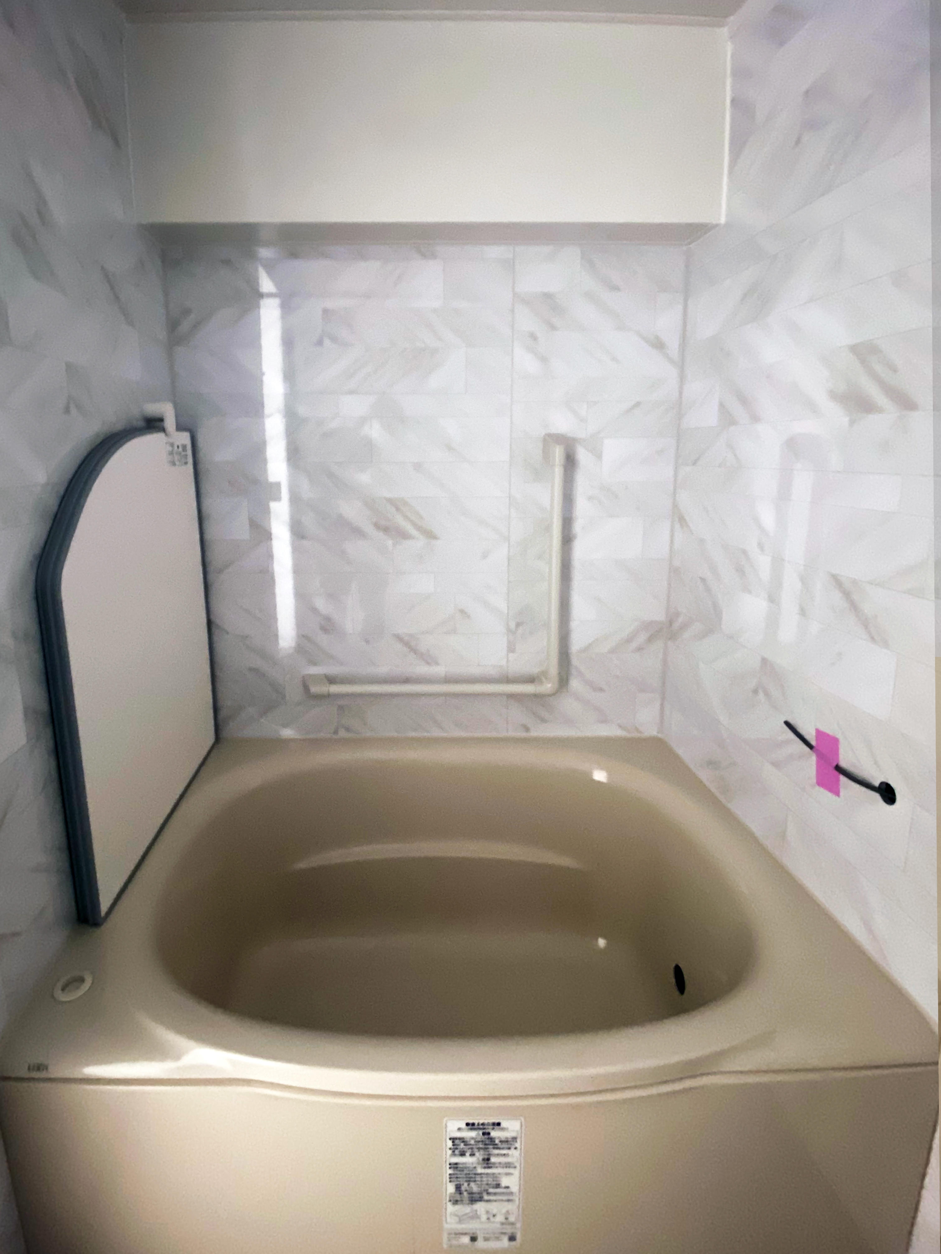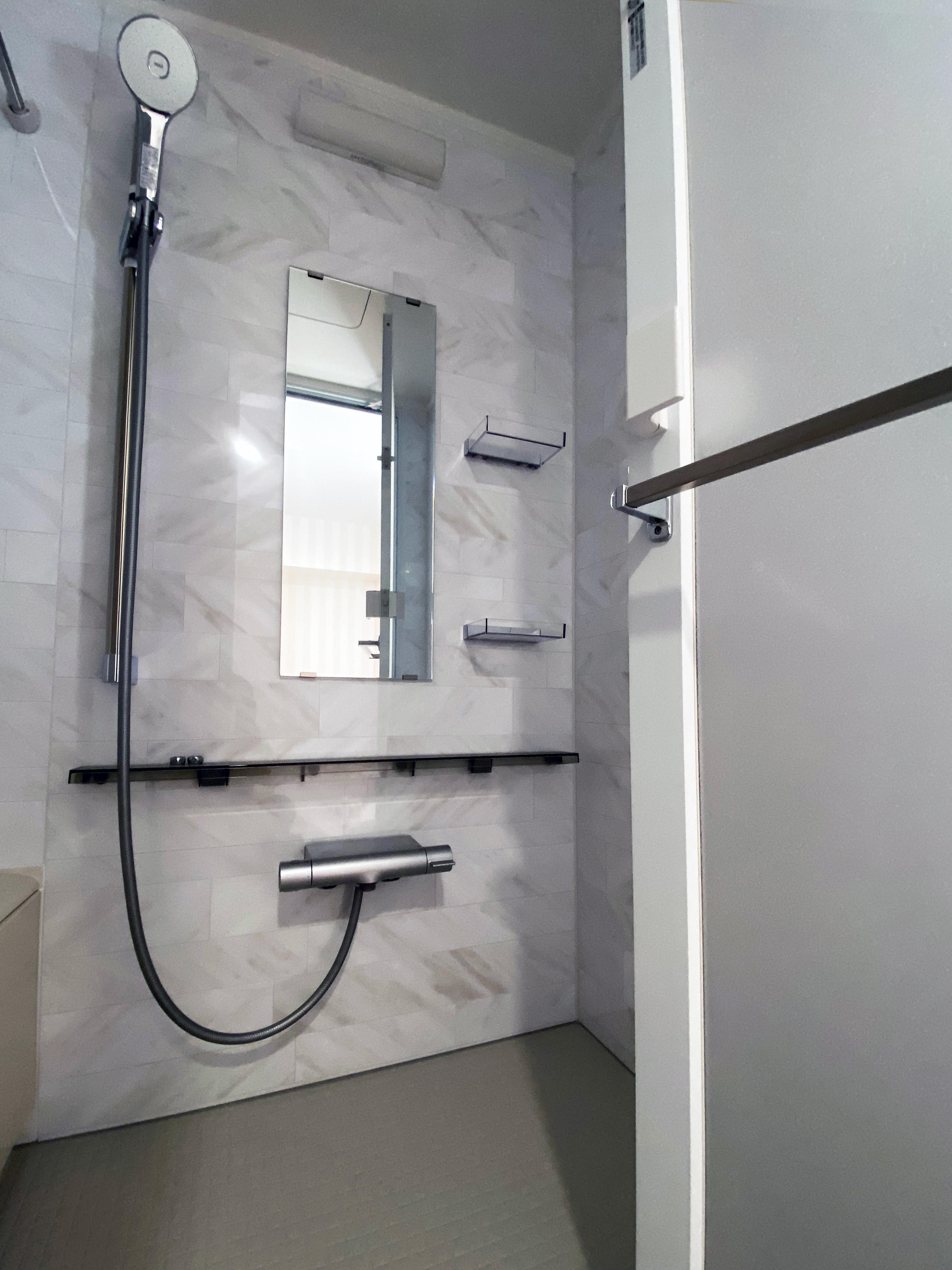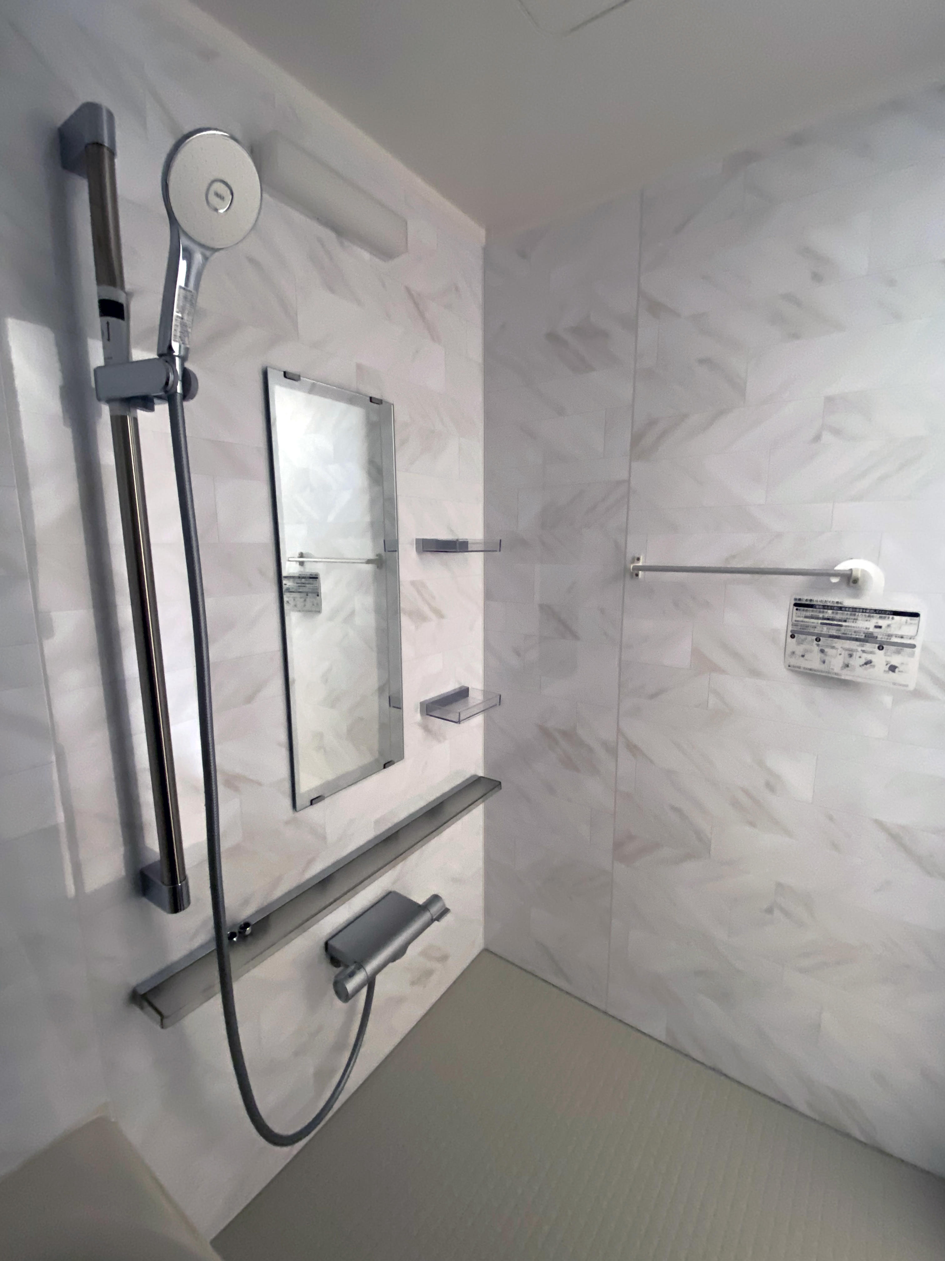また、ユニットバスの機能はシンプルな機能で構わないとおっしゃっていましたが、ショールームで見た壁パネルのカラーを大変気に入ってくださり全面張りにて施工させていただきました。