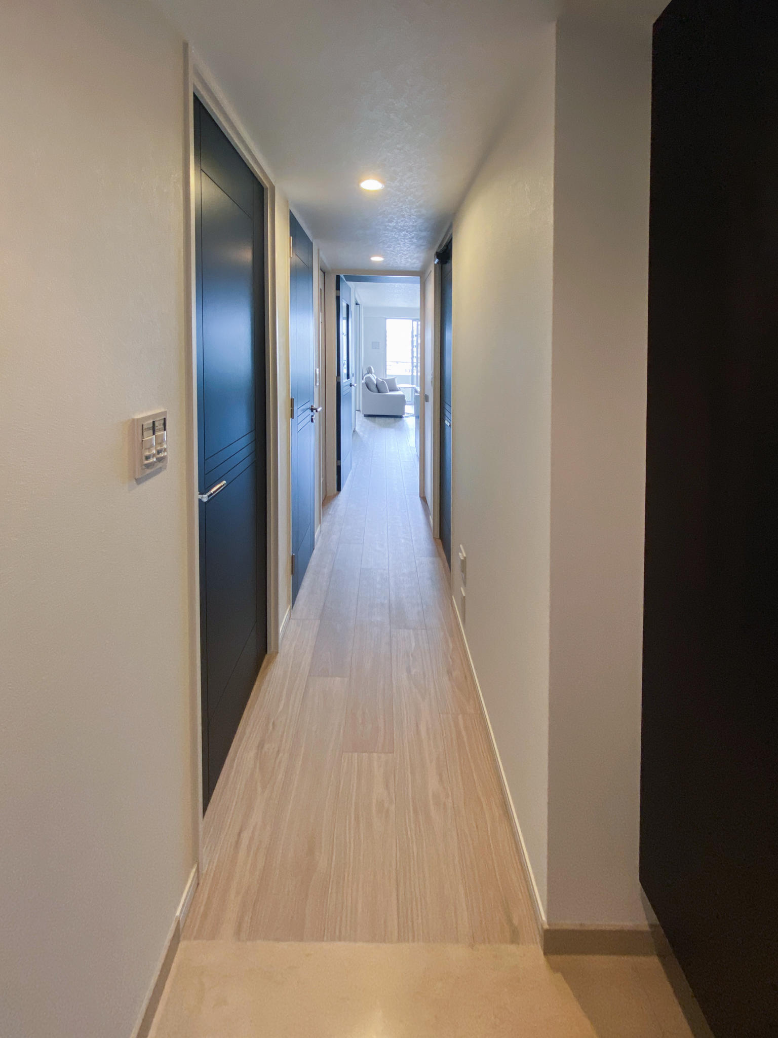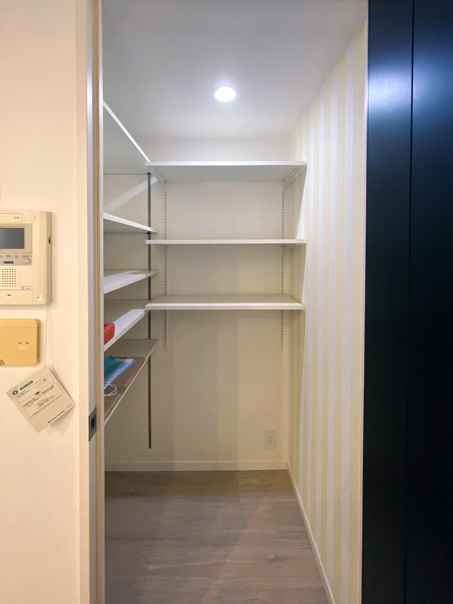トイレの床のヘリンボーンは最後まで向きに悩みましたが、納得の仕上がりになりました。ウォークインクローゼット内のクロスにも、施主さまのマイホームへの思いを感じます。