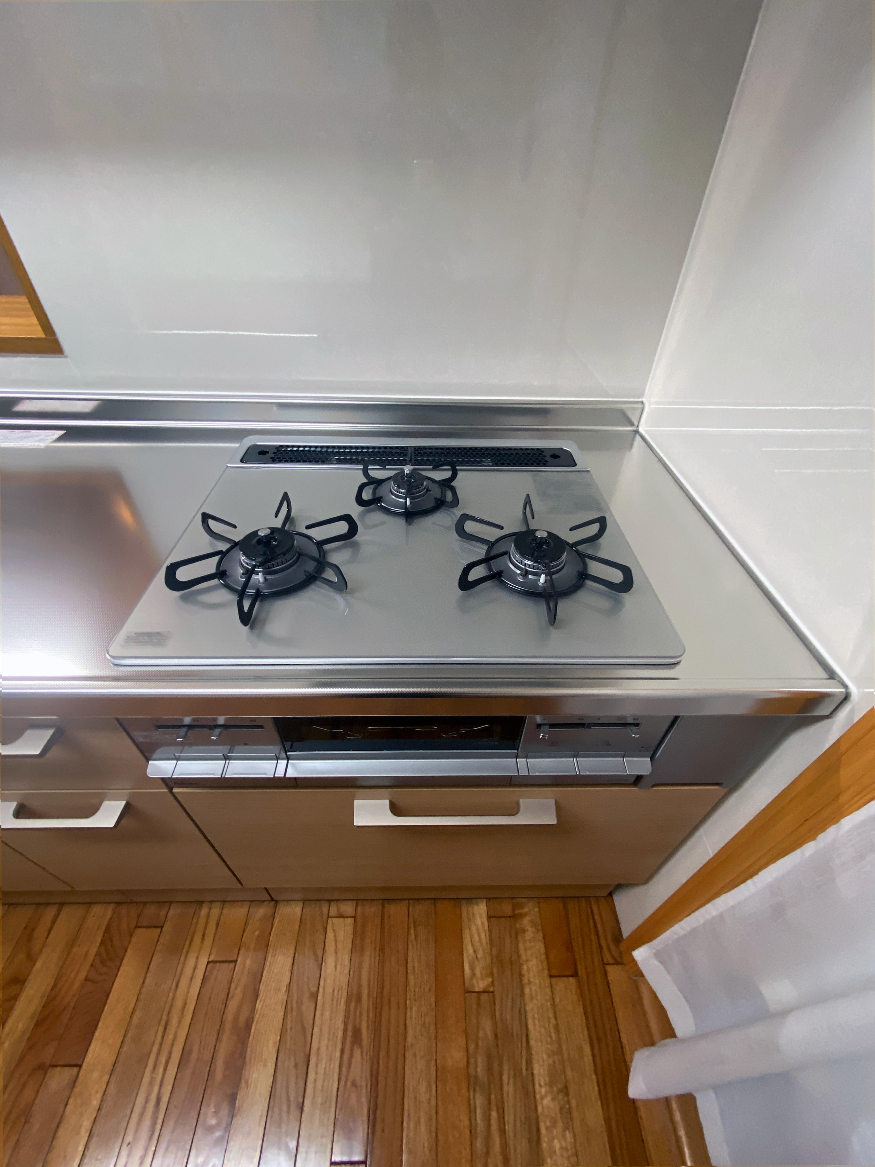 掃除のしやすさ、機能の充実など、クロスもお気に入りのものに張り替えて、やっぱり真新しいキッチンって素敵だねと満足していただきました☆