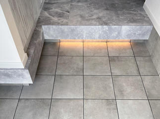 また、框下には間接照明を設置して、暖色系の明かりを配しました。スタイリッシュな空間の中に温かみも加味することで、頭上のシャンデリアと相まって優しい雰囲気を演出しています。
