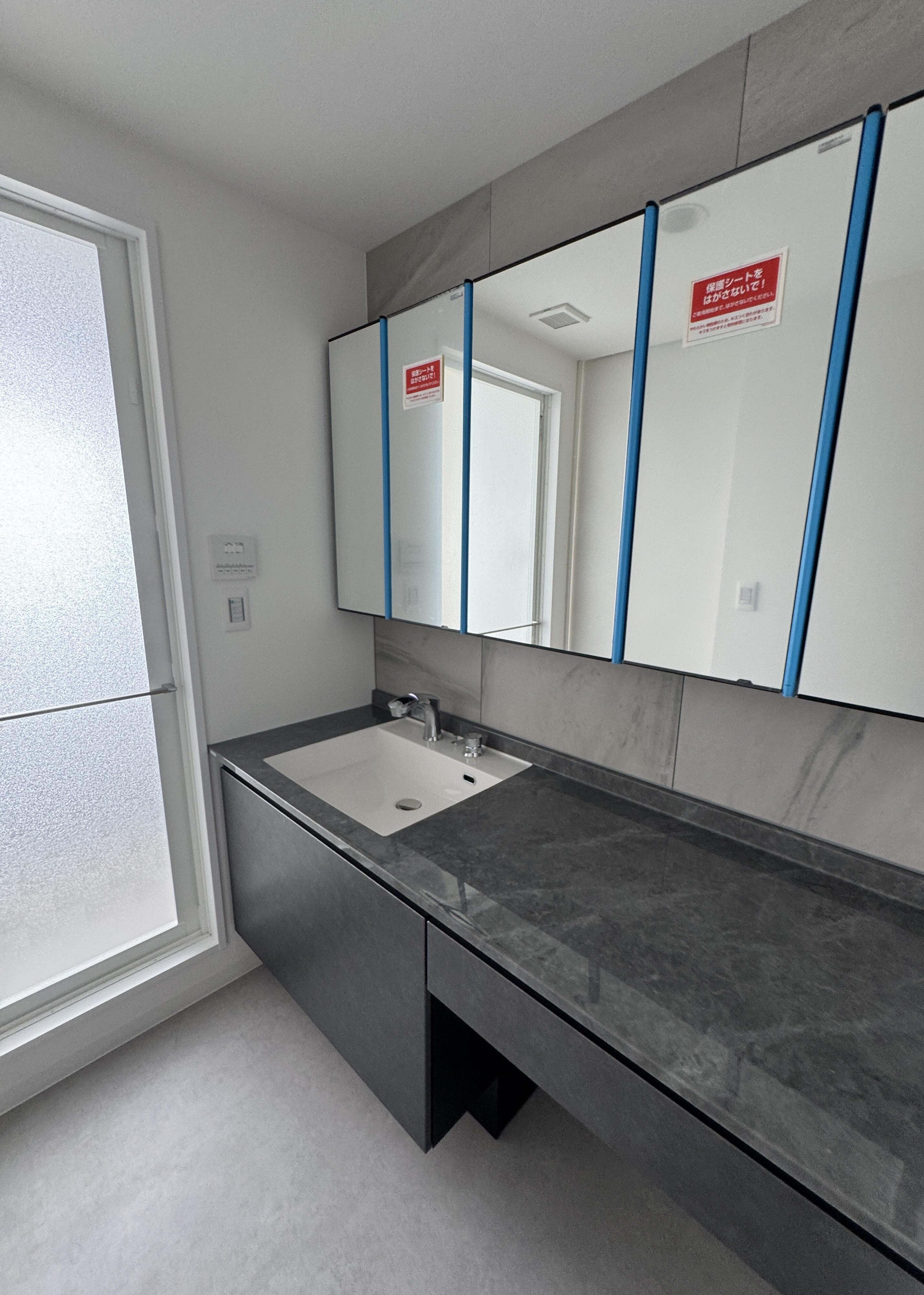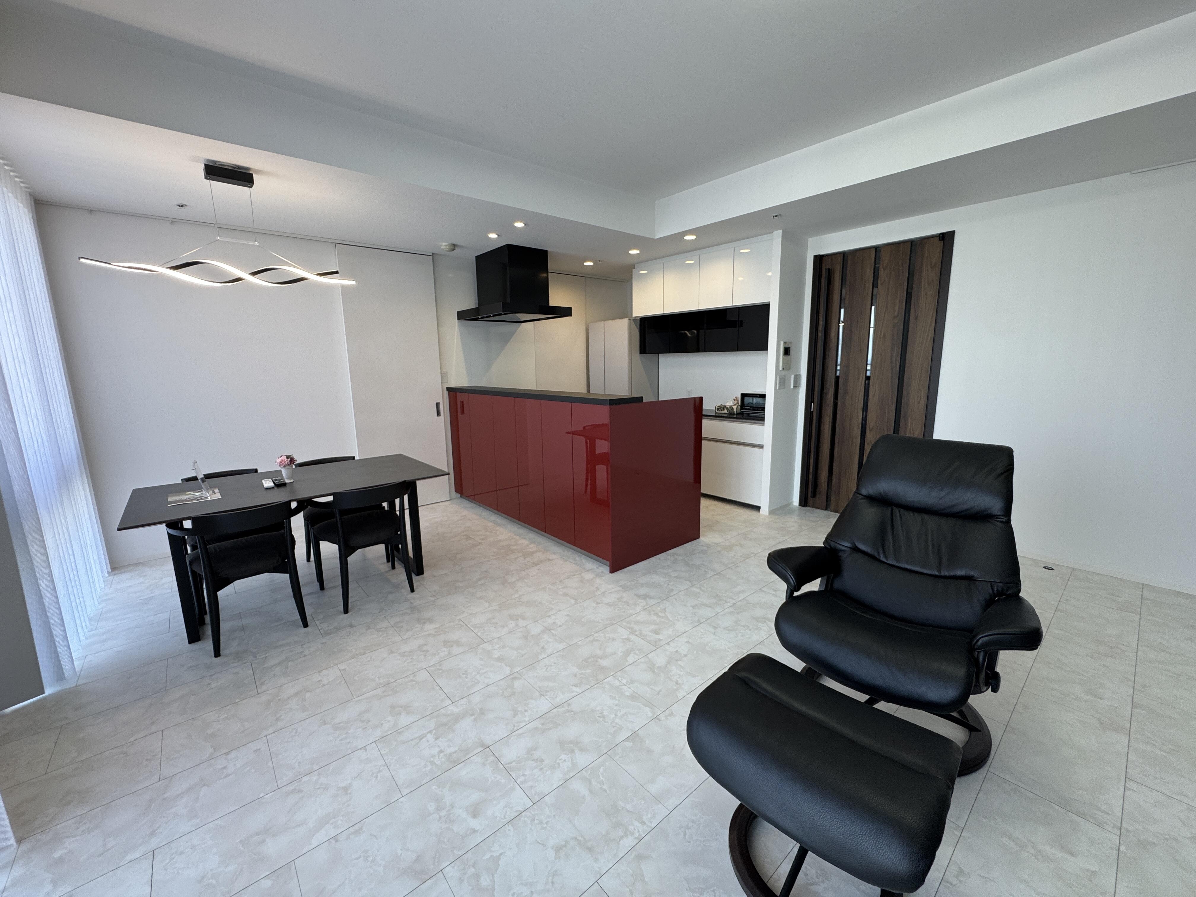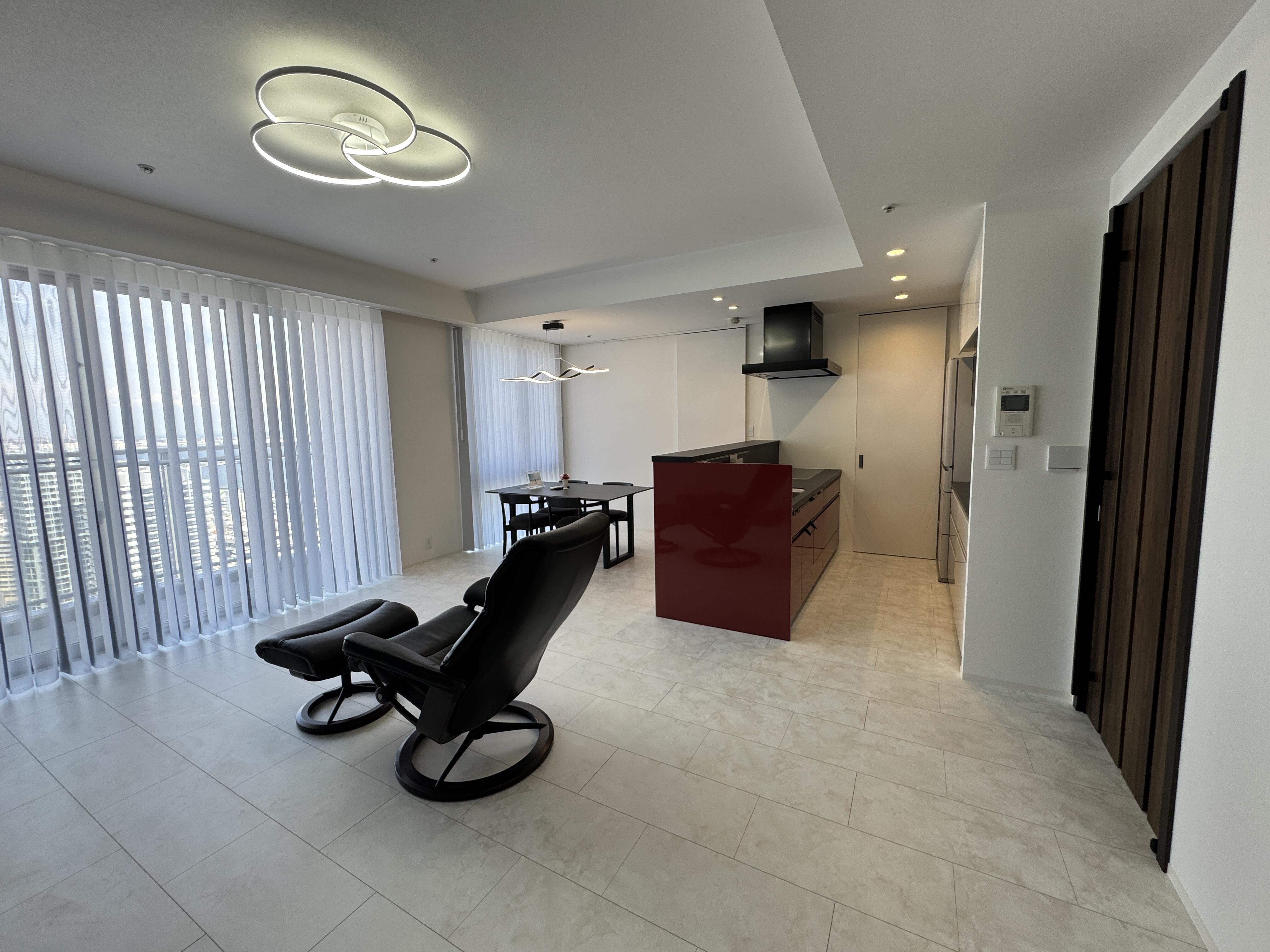 Y様、この度は大切なご自宅のリノベーションをお任せいただき、誠にありがとうございました。 LDKは、アイランドキッチンを採用。モダンな赤いキッチンは、モノトーンの空間の中で見事にY様の個性を表現してくれました。ダイニングも白い大理石調のタイルで高級感ある広々とした素敵なリビングダイニングに。 水回りは、Y様が長く安心して暮らせるよう、安全性と清掃性を兼ね備えた設備で統一。高級感のある素材選びにもこだわり、まるでホテルの一室のような上質な空間に仕上がりました。 Y様の新しい生活が、より豊かで笑顔に満ちたものになるよう、心からお祈り申し上げます。