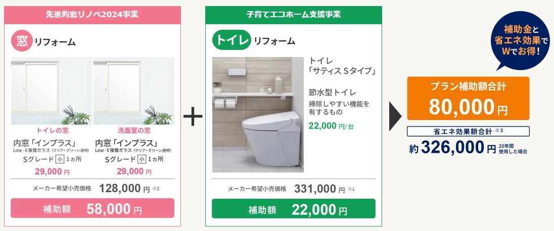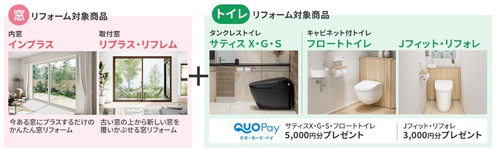 窓とトイレの対象商品をセットでご購入、リフォームいただいたお客さまに