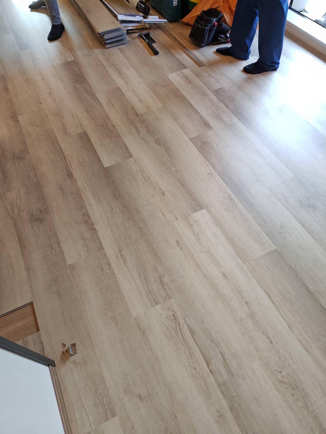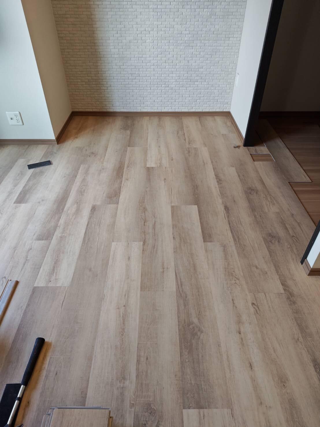 東洋テックス 楽ロック 既存の床に上貼りができ、接着剤不要、釘不要で剥したいときにはすぐ剥すことのできる置き式タイプの床です。