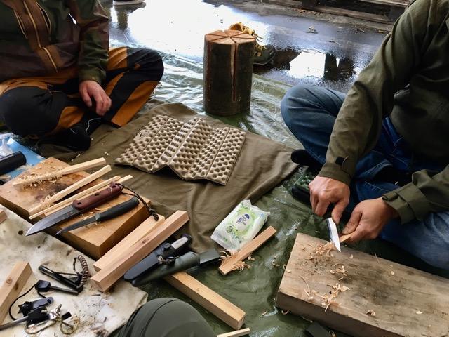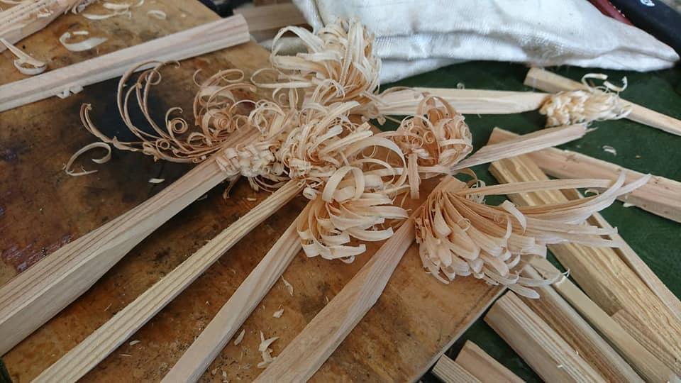 ↑ナイフで削って、↓のフェザーステックをつくります。