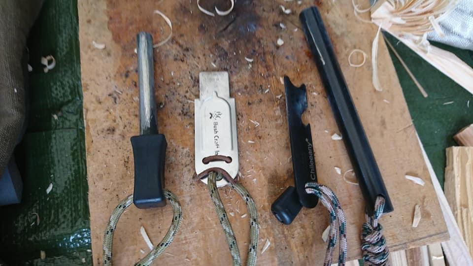 ↑のフェザーステックに、↓のファイヤースチールで、着火。