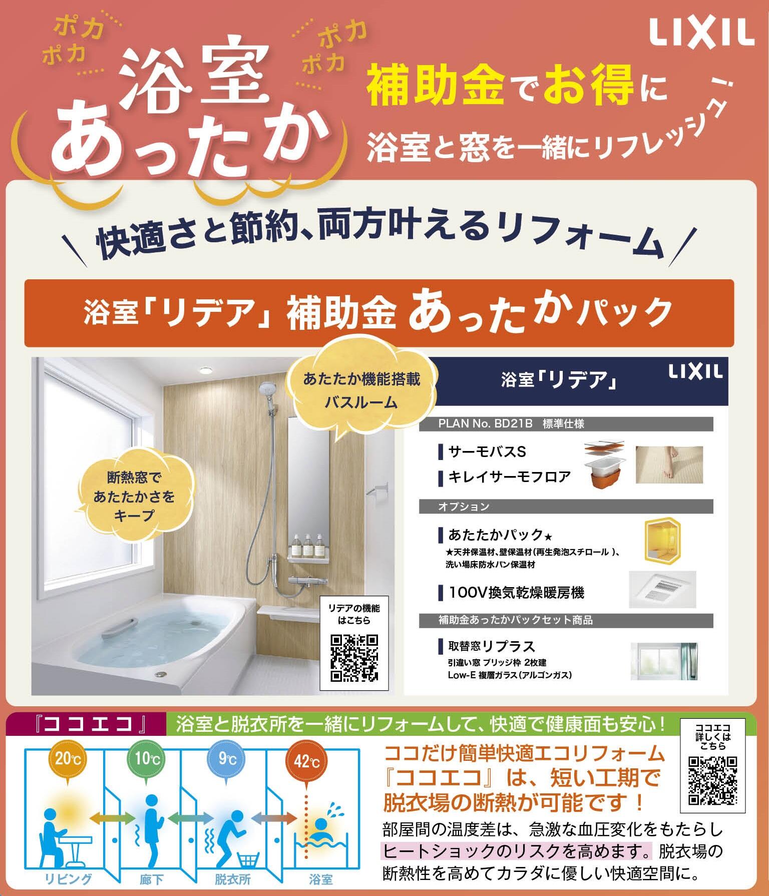 浴室「リデア」補助金あったかパックを
