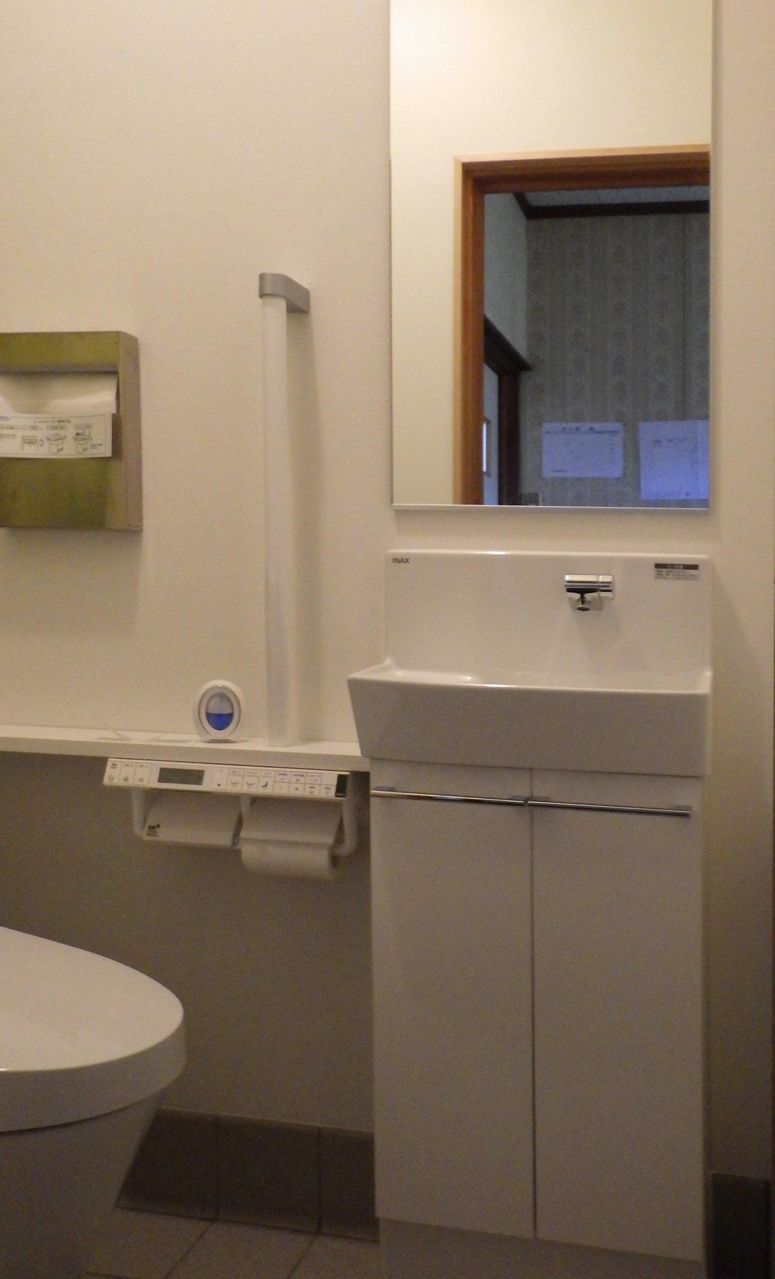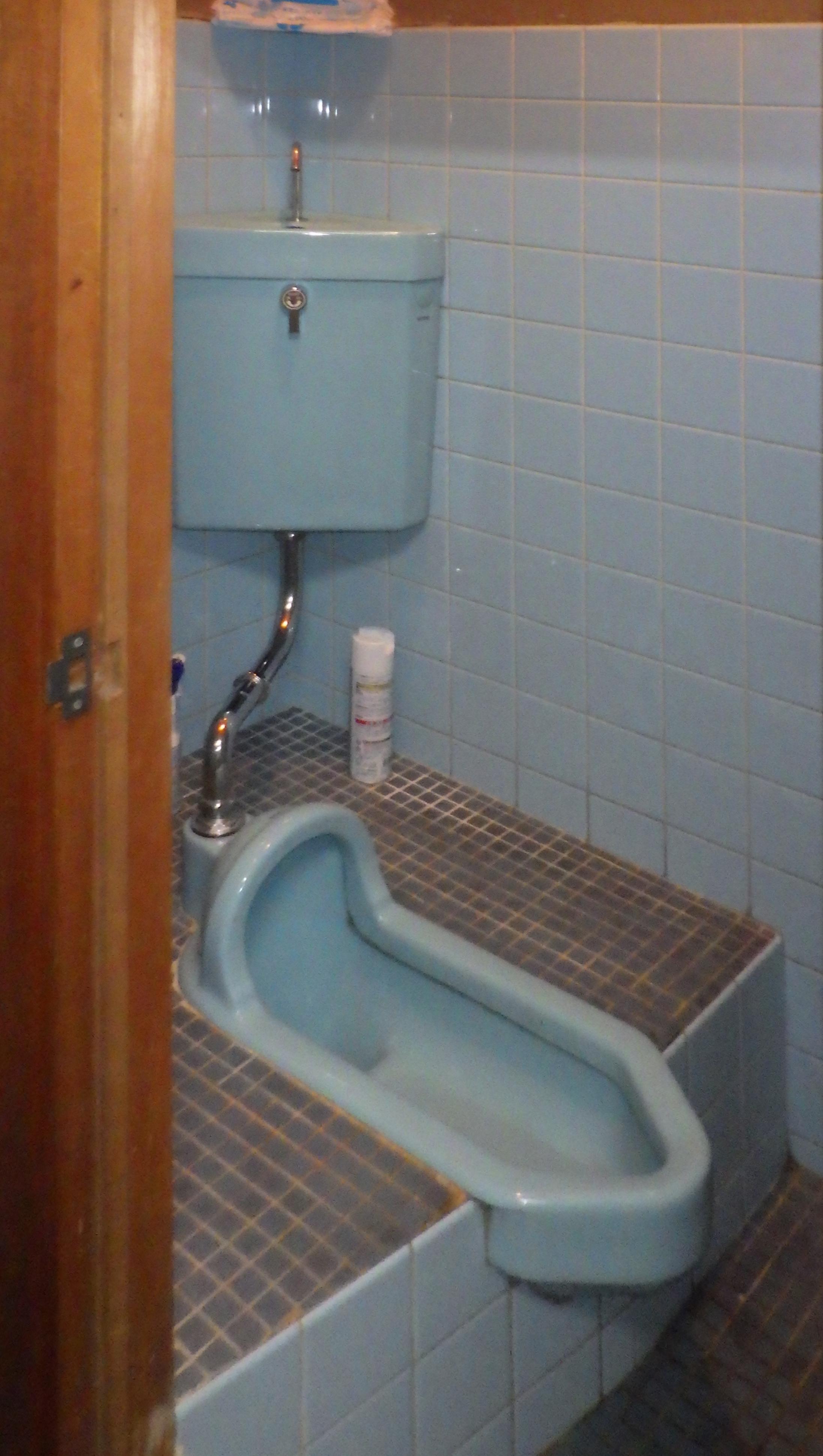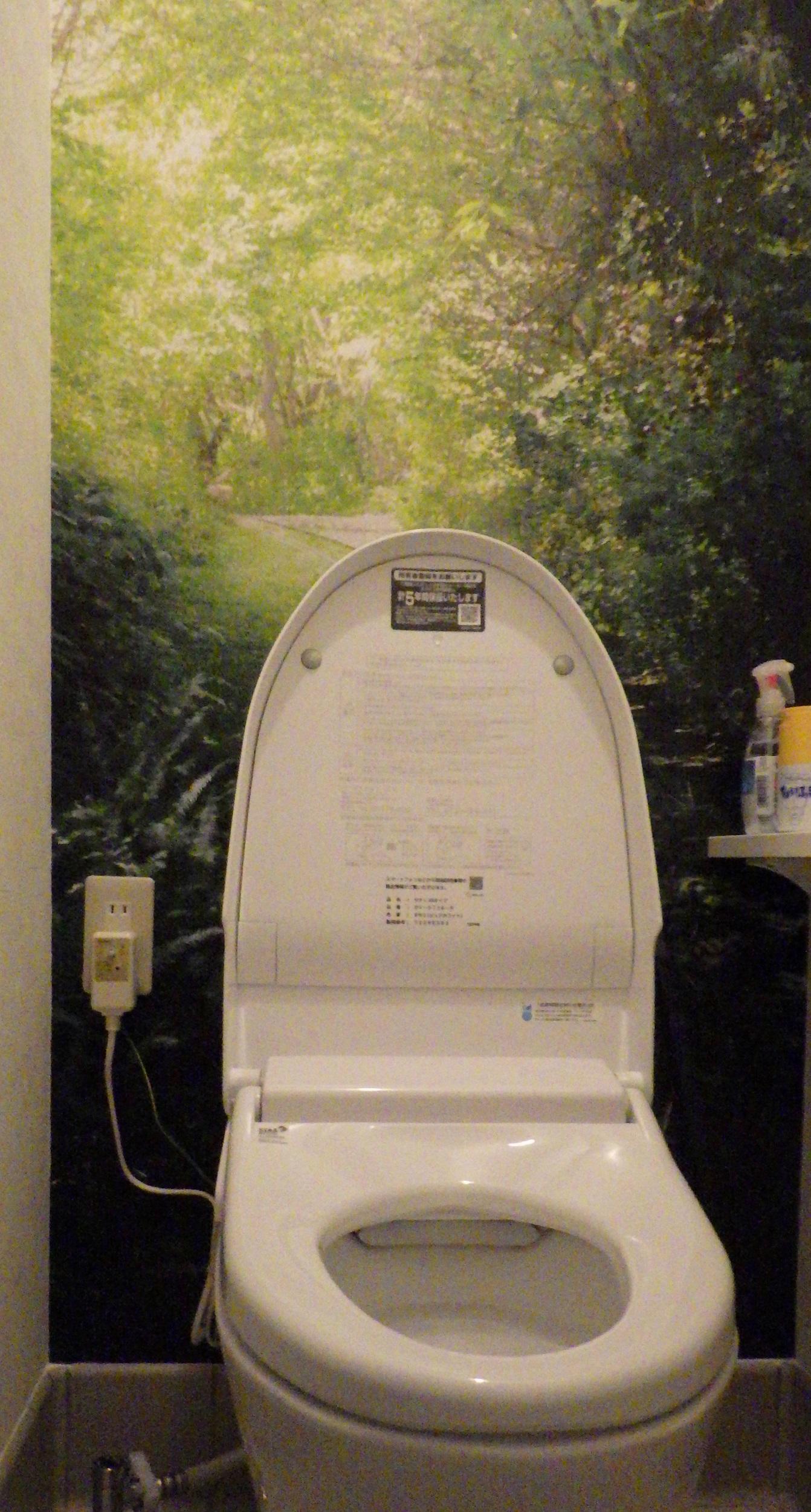 和式便器から洋式便器に交換改修工事。 段差も解消!! 便座後ろをインパクトのある壁紙に変更しました!