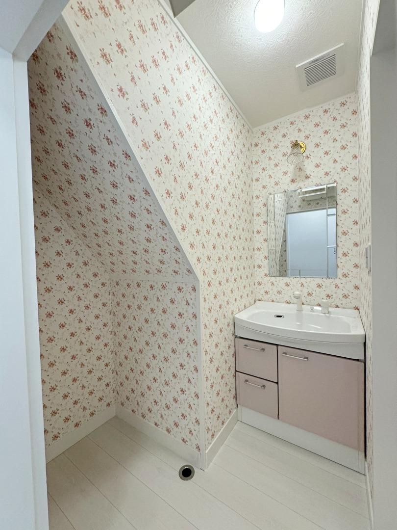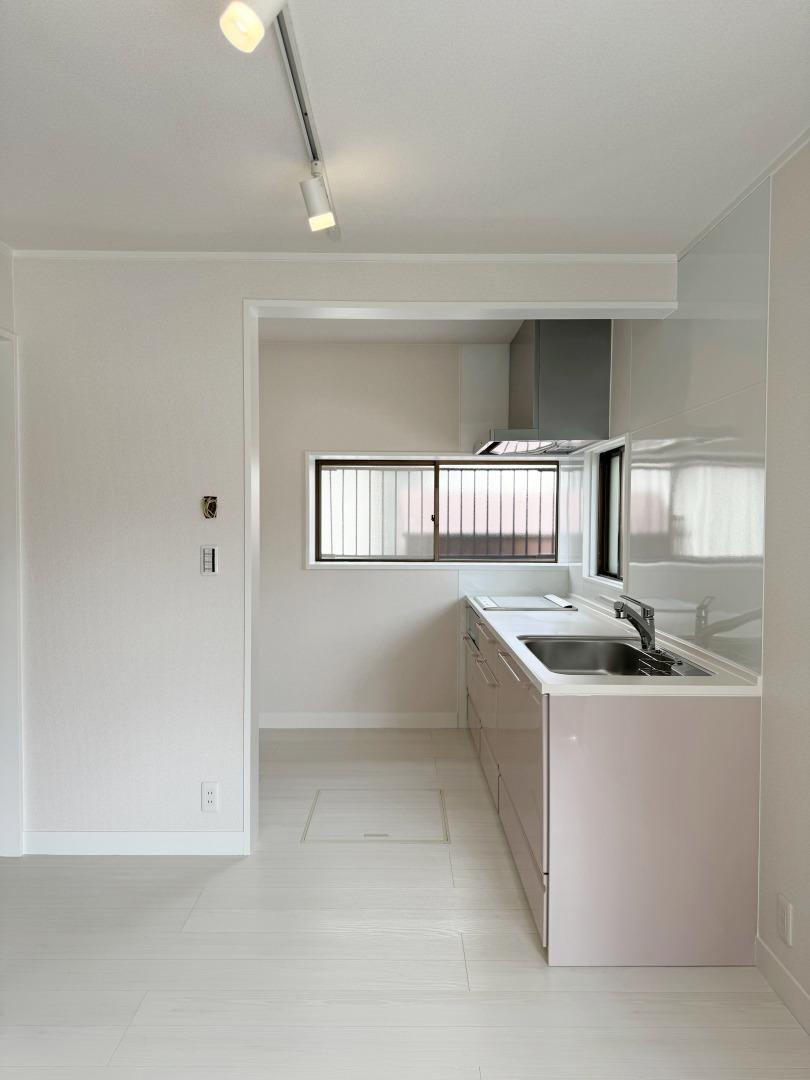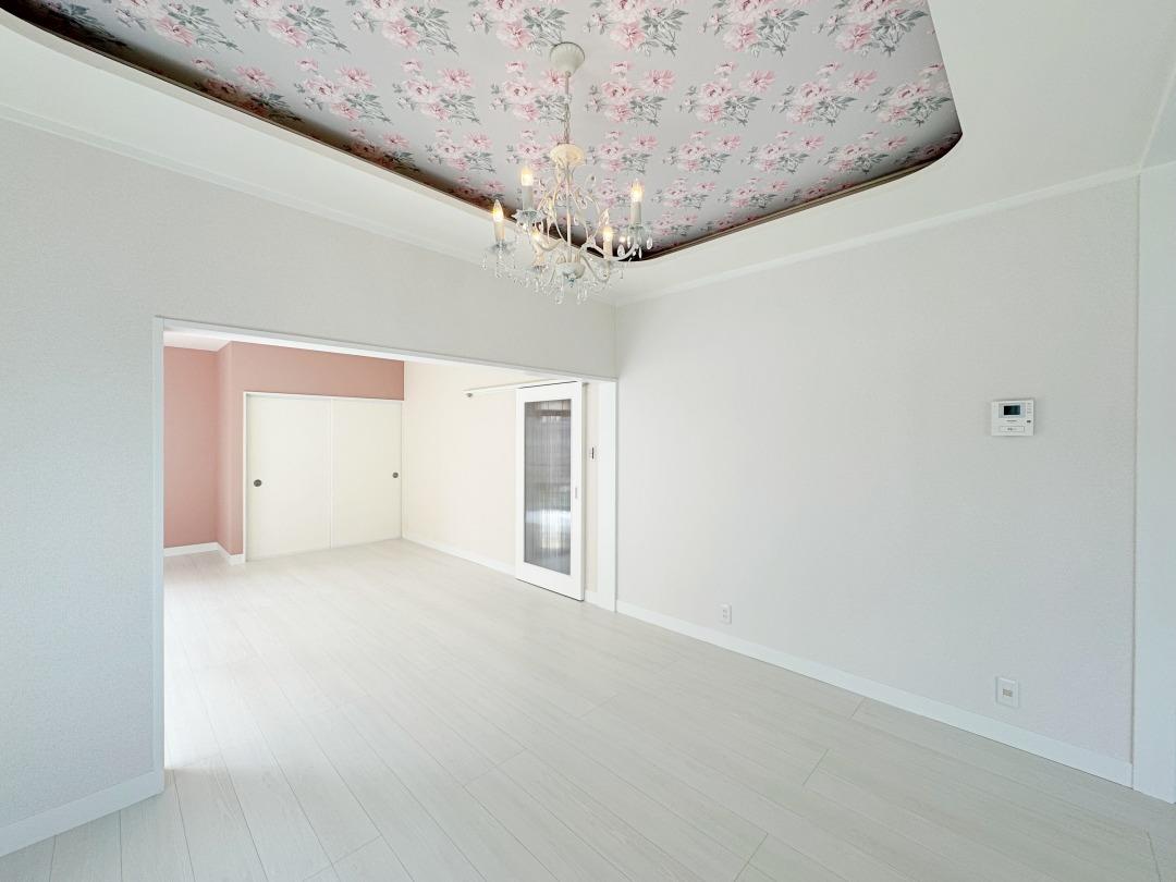 ピンク好きの奥様がチョイスした ピンクのクロスやキッチンが アクセントになり、とても可愛らしいお部屋に!