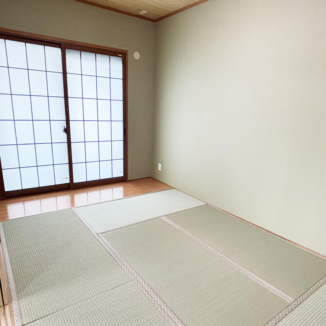 白の普通の壁紙だった壁に土壁風の壁紙をはり、畳を表替えしました。