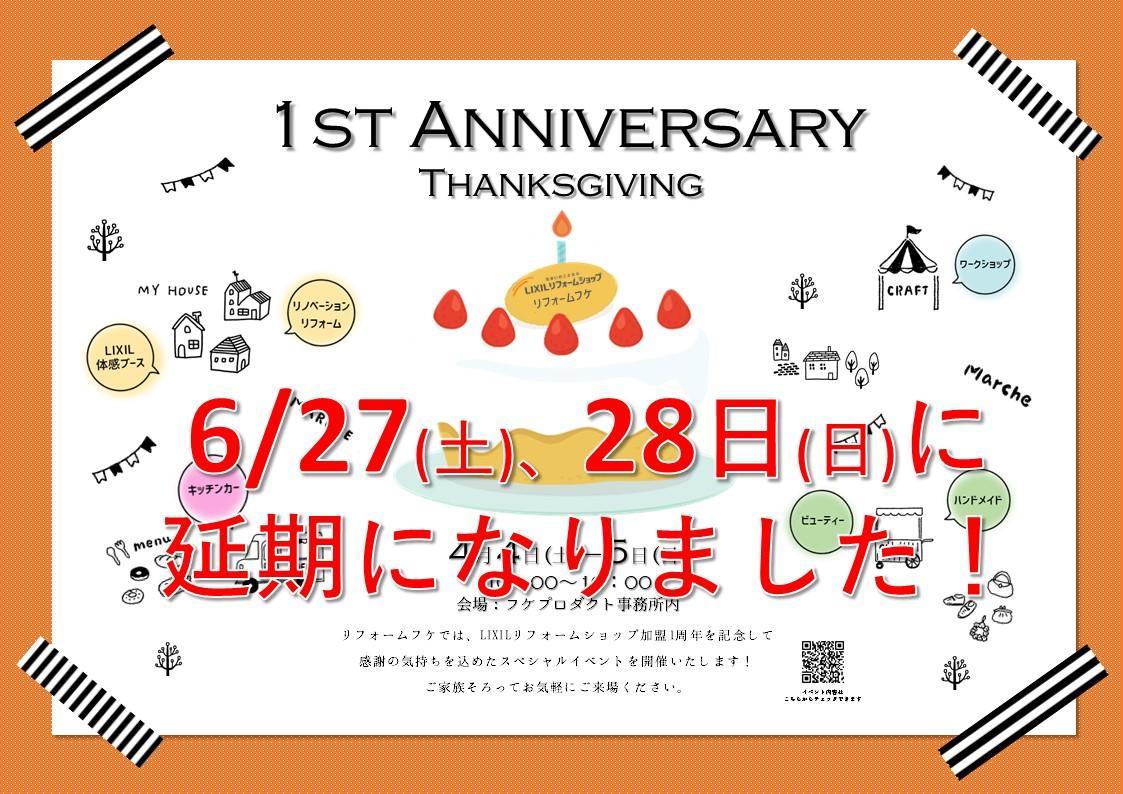 4月4日(土)、5日(日)に予定しておりましたLIXILリフォームショップ加盟1周年記念イベントは、新型コロナウイルス感染拡大防止のため、6月27日(土)、28日(日)に延期することになりました。