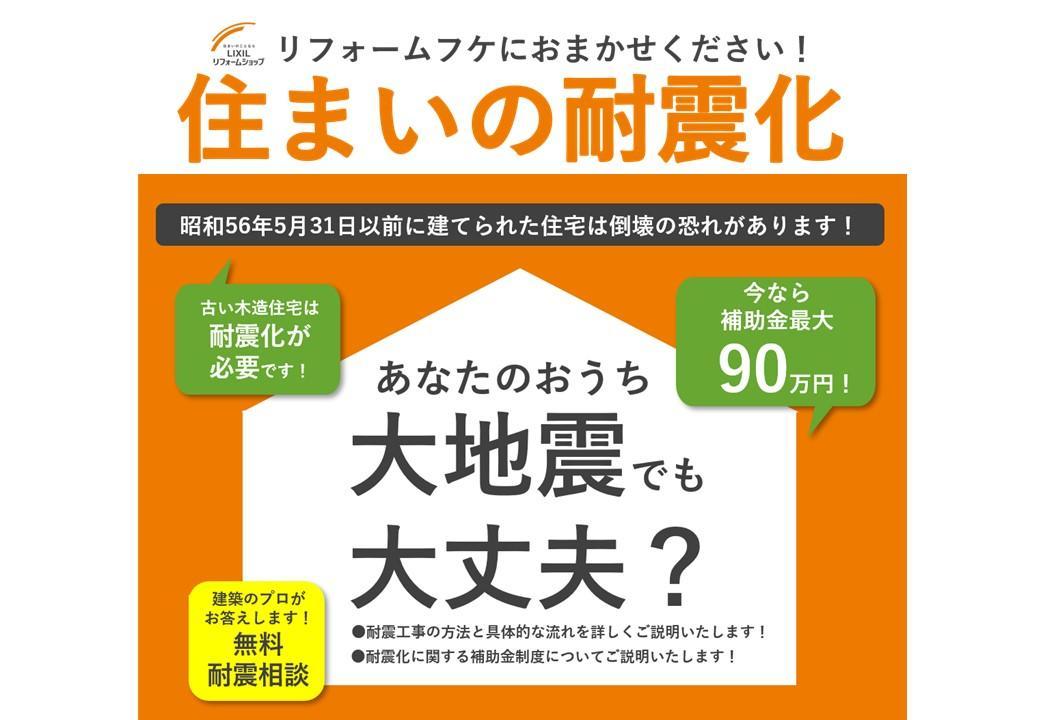 おうちの状態や補助金についてもっと詳しく知りたい方は、リフォーム・フケの耐震の専門家にご相談下さい。