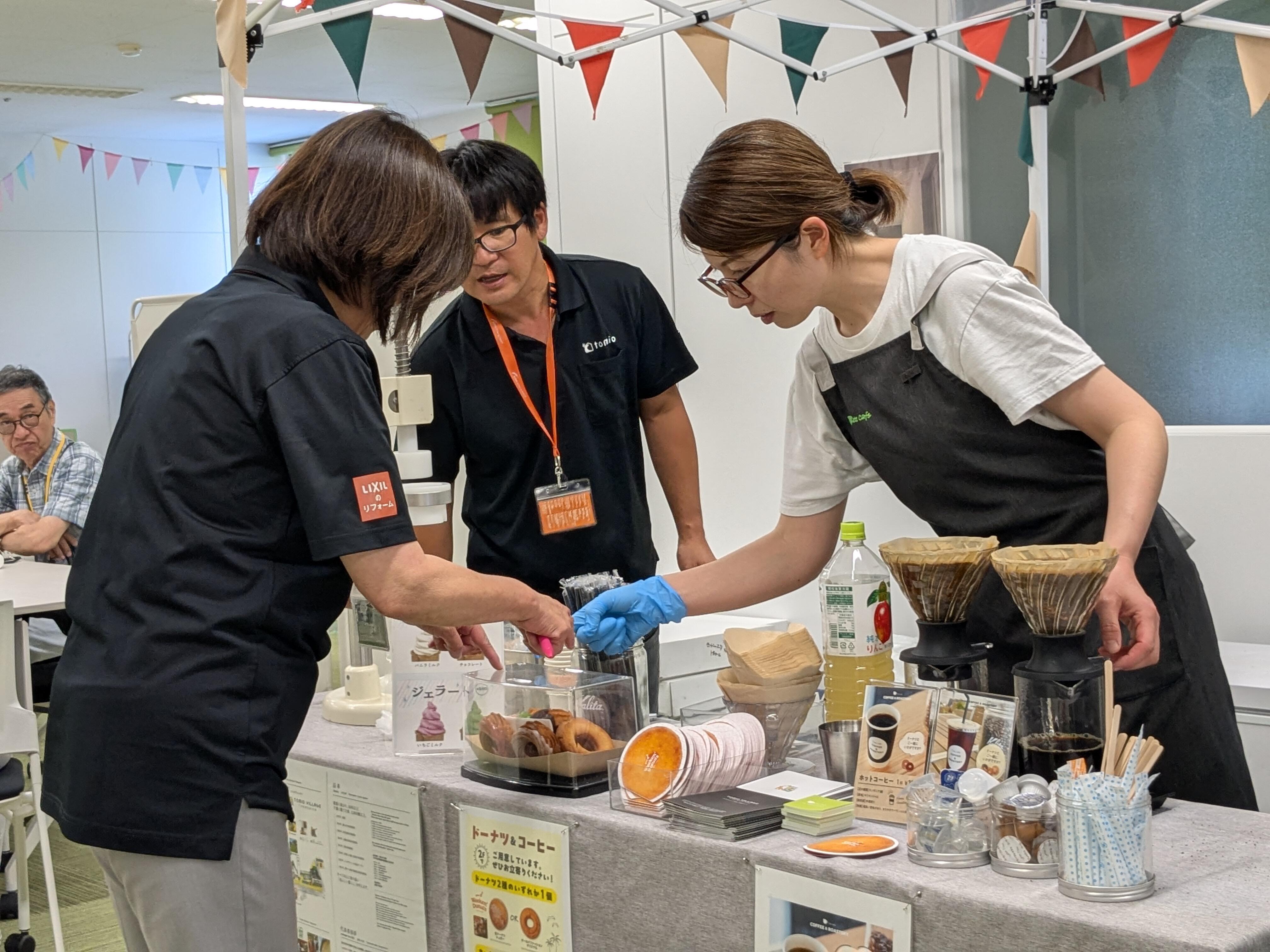 2階には休憩ブースがあり、当日はおいしい生ドーナツやコーヒー、ジェラートのプレゼントも!