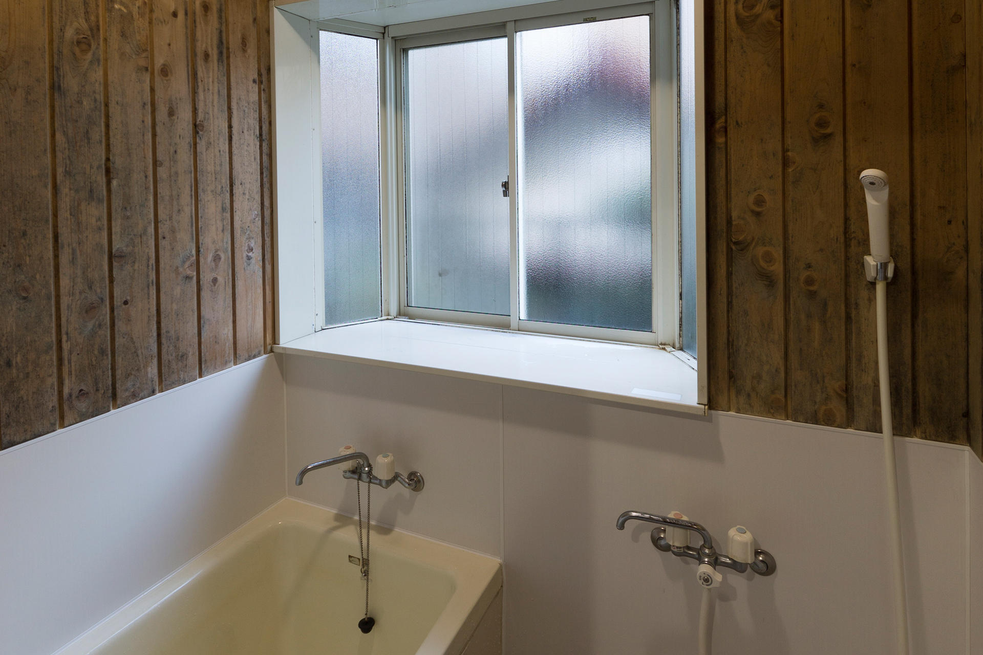 冷たいタイル貼りの浴室でしたが桧の壁は大のお気に入り。ユニットバスに入れ替える選択をせずに、床・腰壁にシートを貼り付けました。滑りの防止のもなっています。