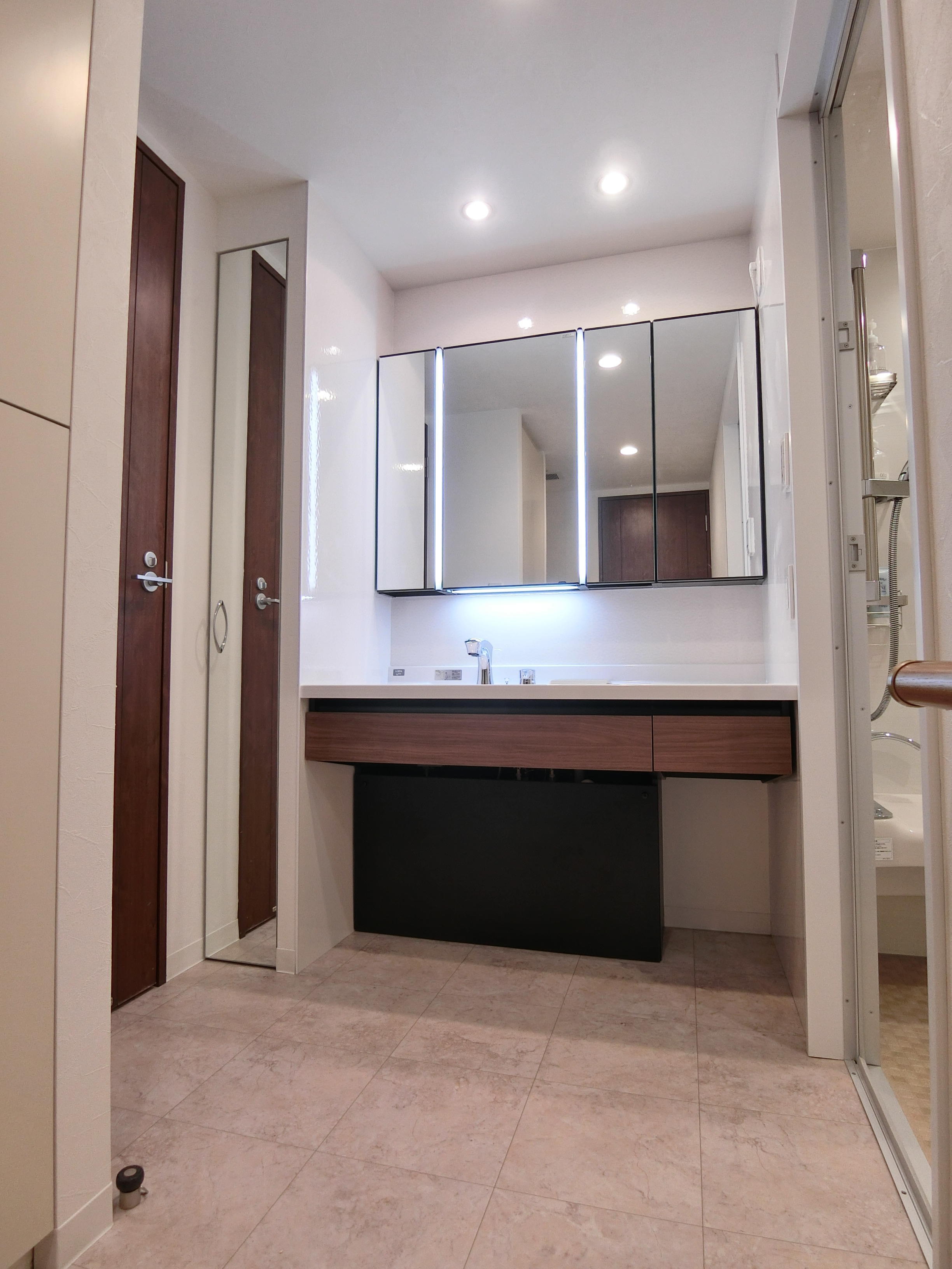 奥様は背が高くない方なので、化粧台の高さを現場で5㎝カットし背の高さに合わせました。