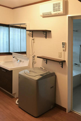 洗面台は扉タイプで収納量が少なめで、洗面ボウルも小さく使いにくく、床や壁紙は築30年経ち汚れが目立ってきていました。洗面台は引き出しタイプのLIXIL「ピアラ」。収納力が大きくなったほか、大型の洗面器と奥に配置された排水栓で洗濯物のつけおき洗いにも便利です。ホースによる収納式の水栓なので、お掃除も使いやすさもワンランク上の洗面台です。ヒートショック防止のため、洗面室暖房機も設置し暖かさにも配慮しました。