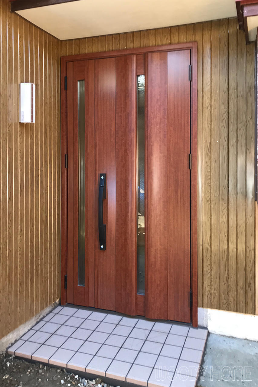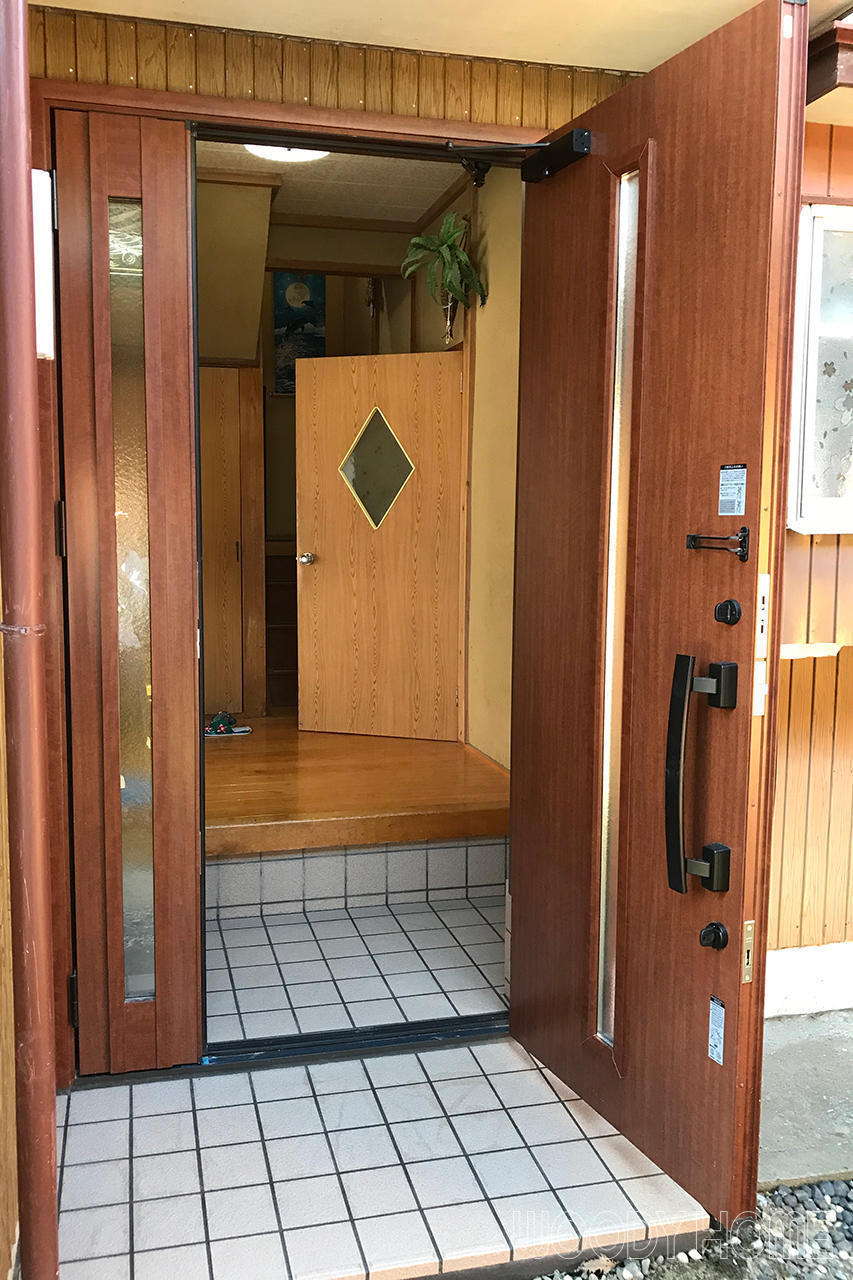 明かり取りのガラス面をなくし、高さのある断熱性の親子ドアに取替えました。玄関は家の顔といいますが、これだけで家の格が上がったようです。