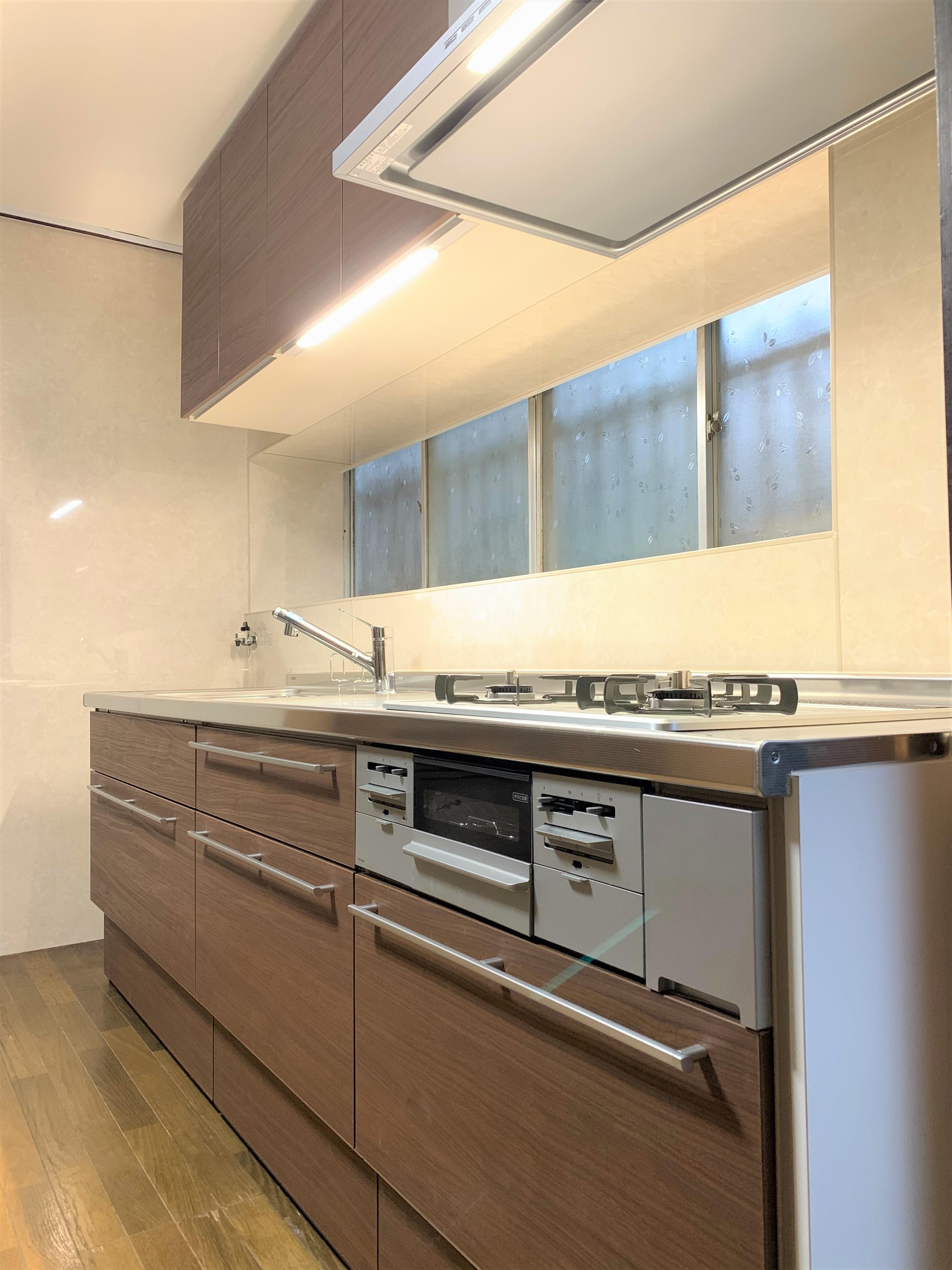 収納力抜群の最新のキッチン!大人気のLIXILのアレスタ!キッチンフードのお手入れも2ステップしかしないお掃除楽なものにしました。瞬間湯沸かし器もなくし、キッチンパネル壁はサッとひと拭き!床はコーティングをして清掃性もUPしました。キッチン時間も楽しくなり奥様の夢を実現。これで大好きなガーデニングにさらに時間を費やせます♪過去に幾度も工事をしたにもかかわらず、改善されずにいた毎年の梅雨や台風の度に悩まされていたキッチン上からの雨漏れもキッチン工事前に雨漏れ専門の職人が原因を追究して、原因部分を工事にて改善しました。これで安心な空間になりました。