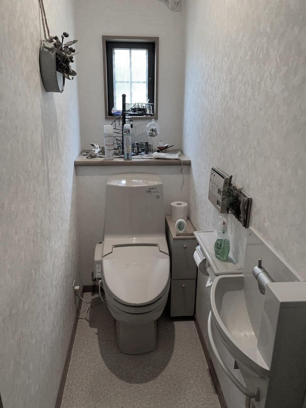 次はトイレ工事で全体的に落ち着いたシックなトイレにしたい。お掃除手間を少なくしたい。というご要望でした。