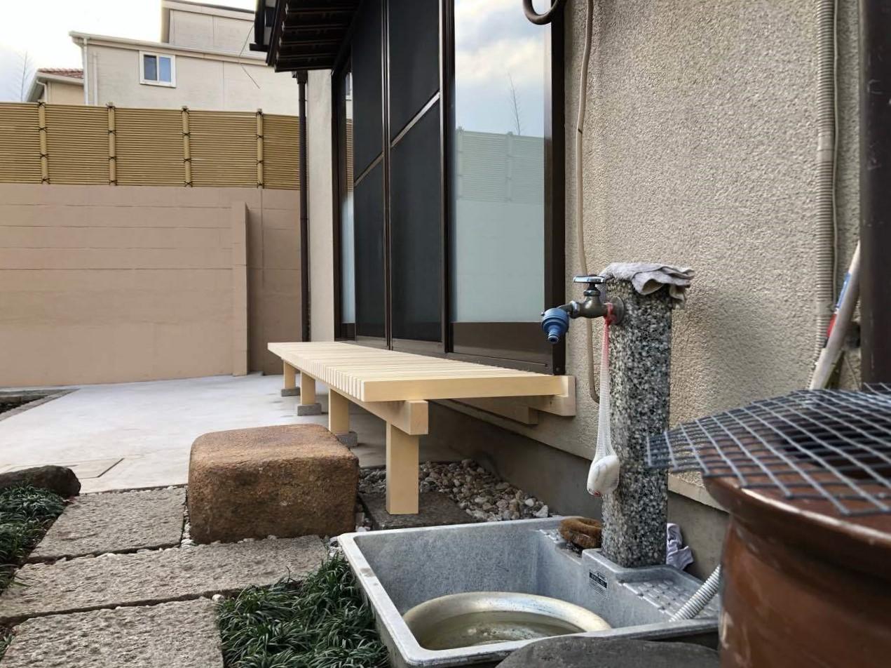 工事が終わって前回の濡れ縁と併せて最高のお仕上がりにできたと自負しております。職人さんの技術に石材屋さんのご協力あってのものです。本当にありがとうございました。