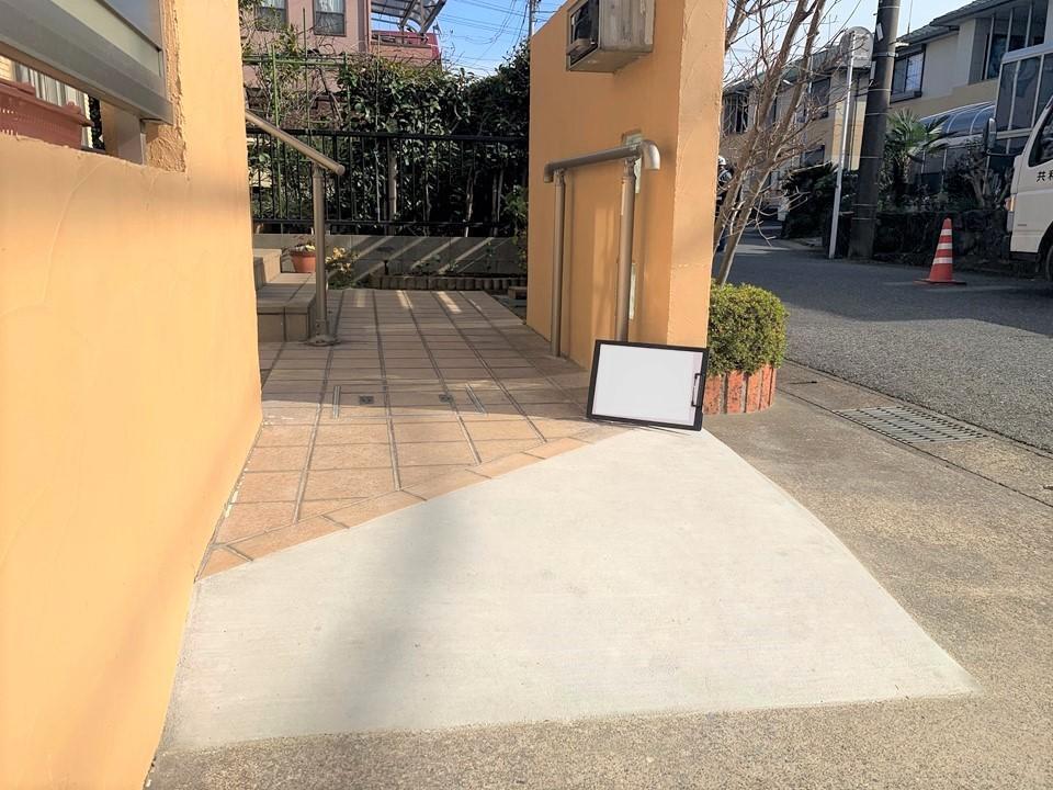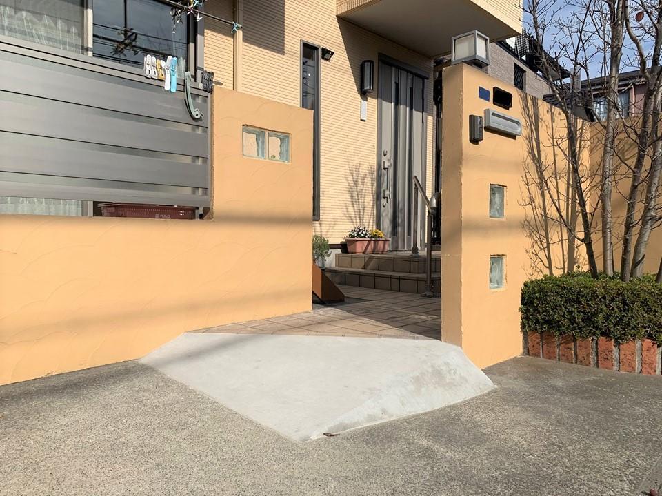 車いすで上がる際のスロープを木で作っていましたが、ガタついて危なかったのでコンクリートのスロープにしました。