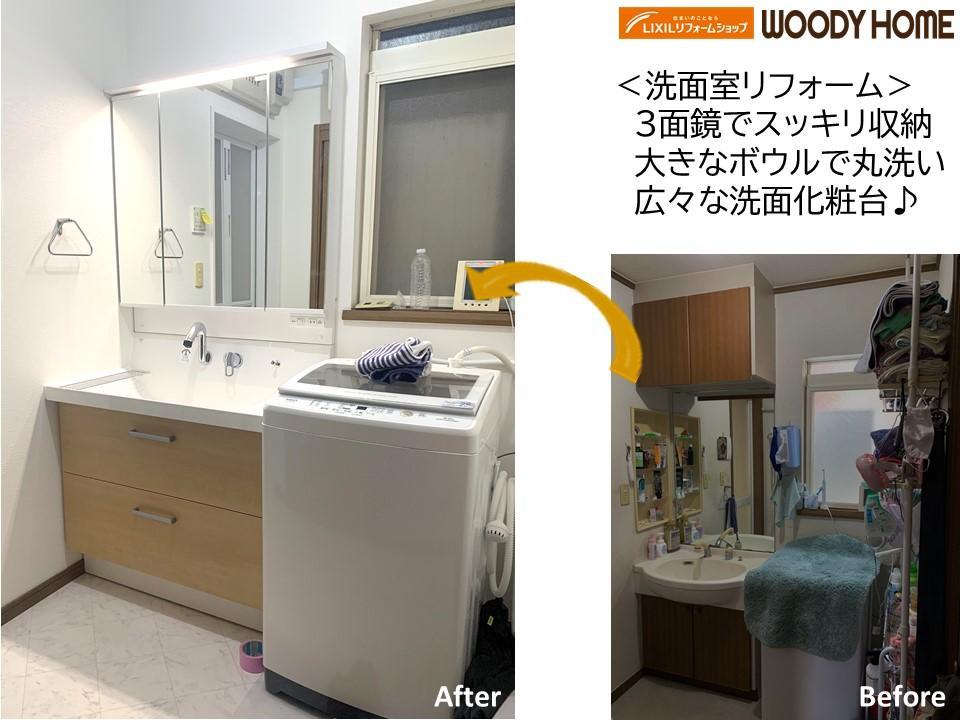 洗面もスッキリした収納にして、明るい部屋にしたい。