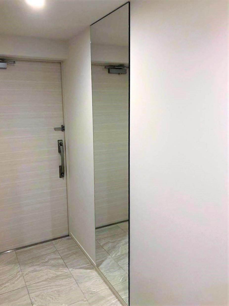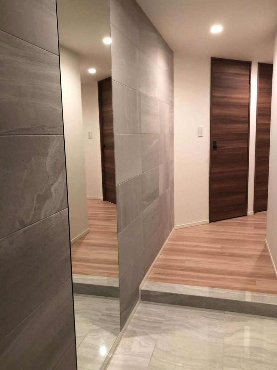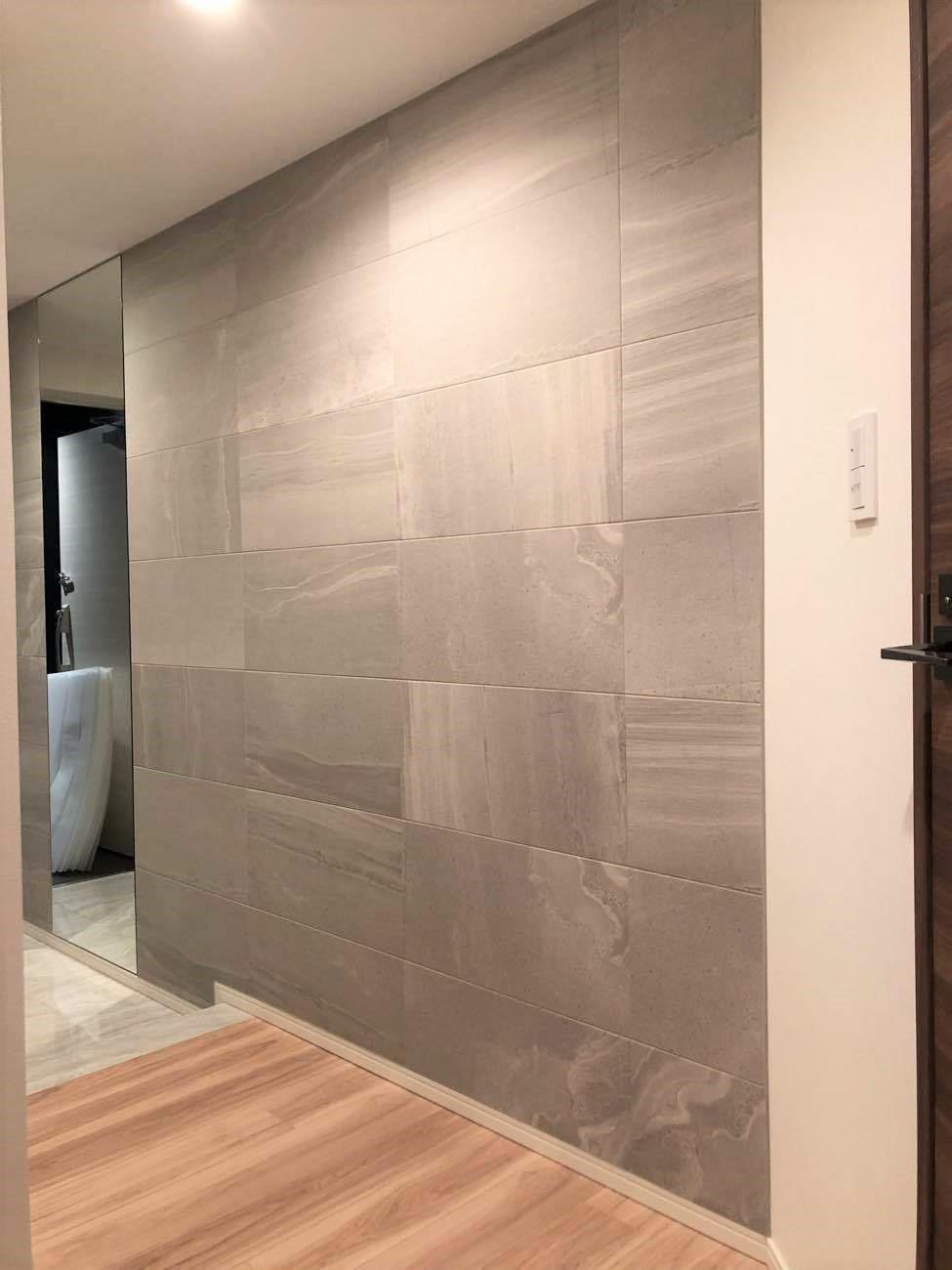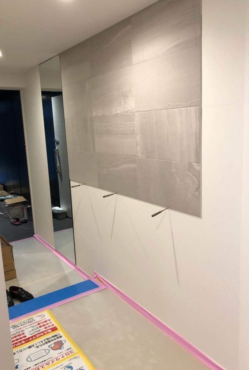 プレーンな玄関前がエコカラットを配置することで都会的な質感を活かしたイメージで大変身。靴箱前の気になりやすいにおいにも消臭効果のあるエコカラットなら快適です。