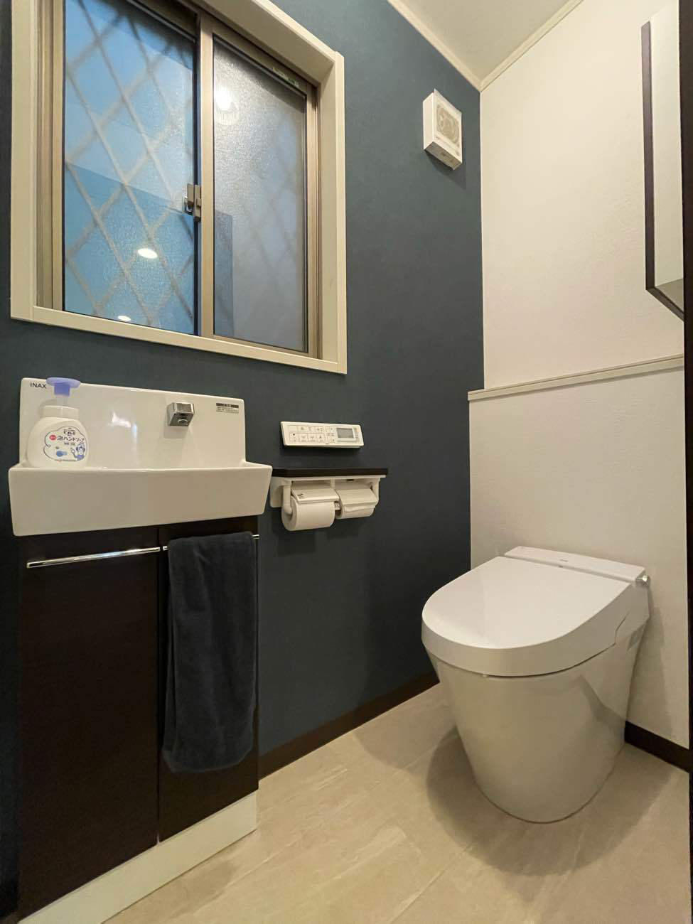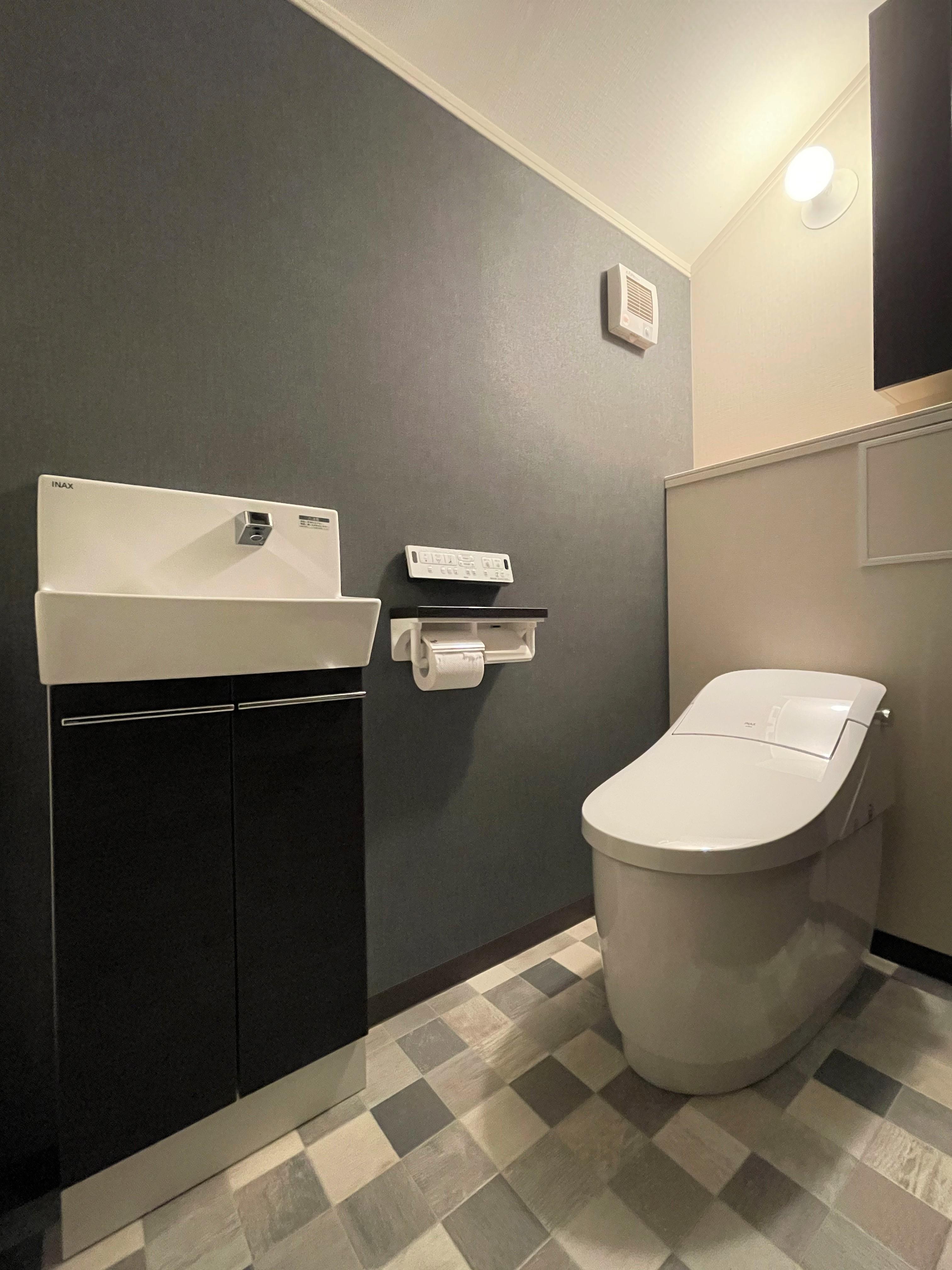 中古住宅を購入し、住まう前にトイレなどをリフォームしたいご要望でした。 1階は明るく、2階は落ち着いたシックな空間になり、ご満足いただきとても嬉しく思います。 お施主様と楽しみながら仕様や色柄を決めて行けたので私もとても楽しかったです。 ありがとうございました。