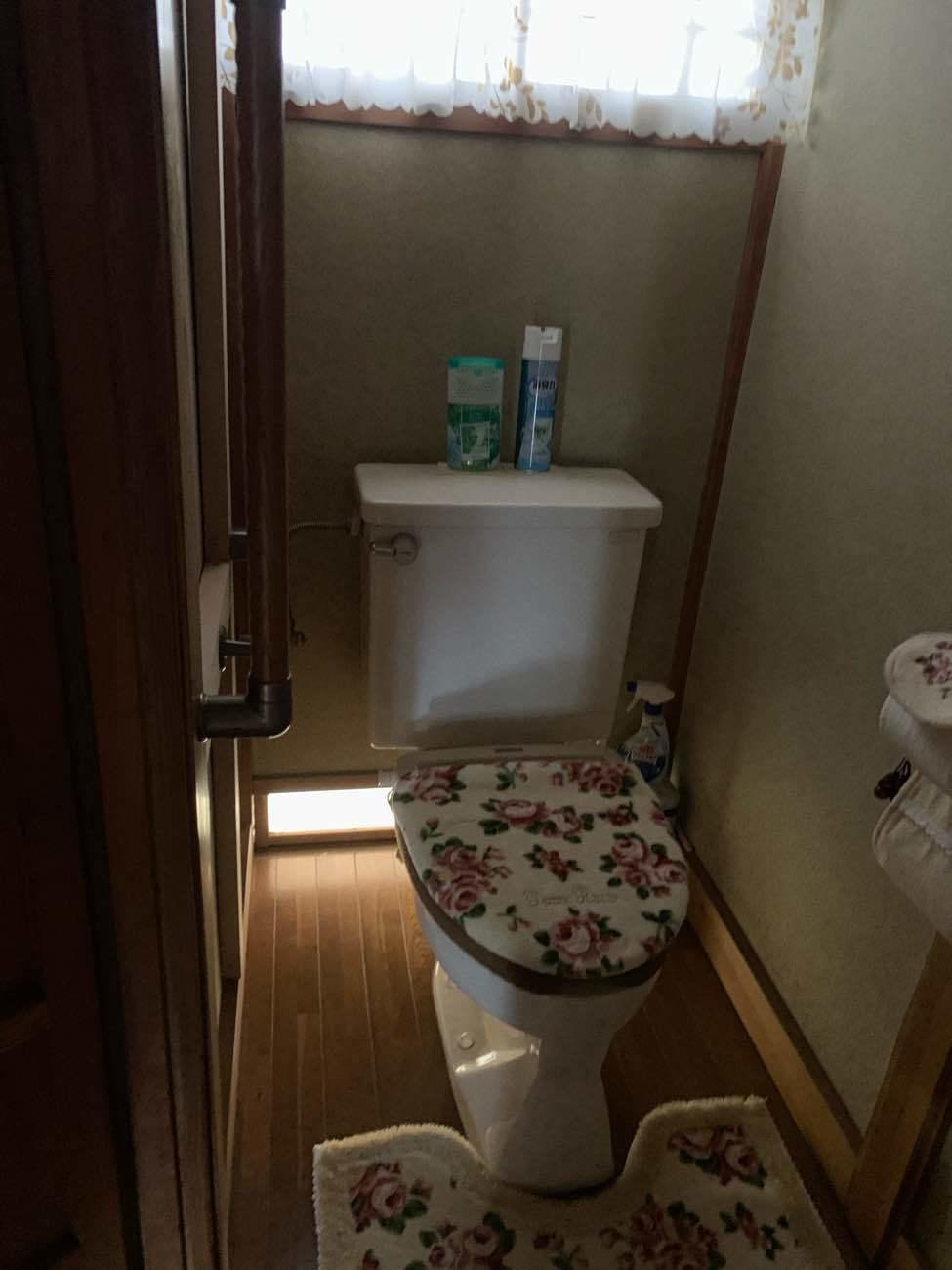 リノベーション工事のトイレ室部分になります。床下の断熱、窓も交換して断熱性を高めていきます。