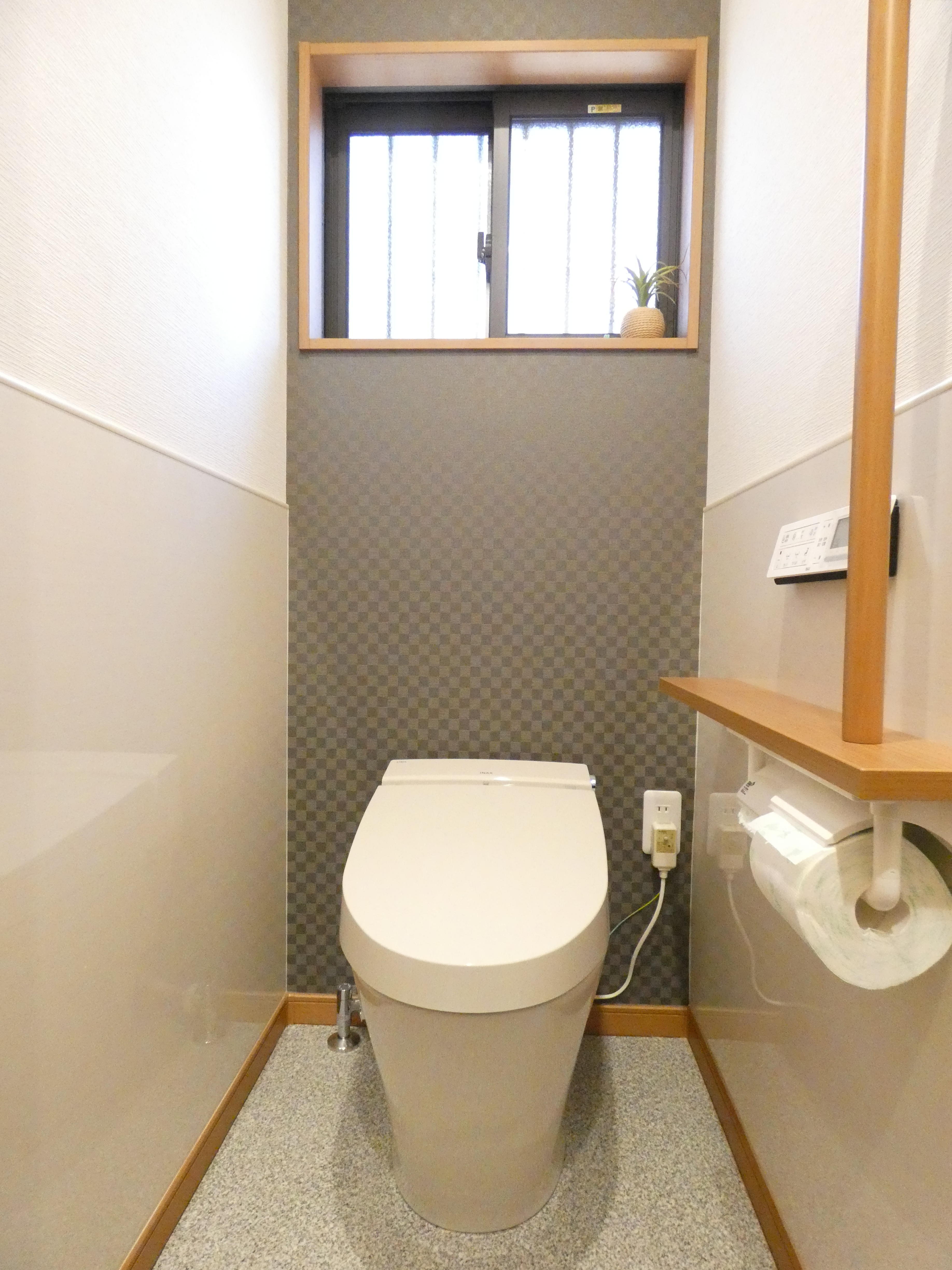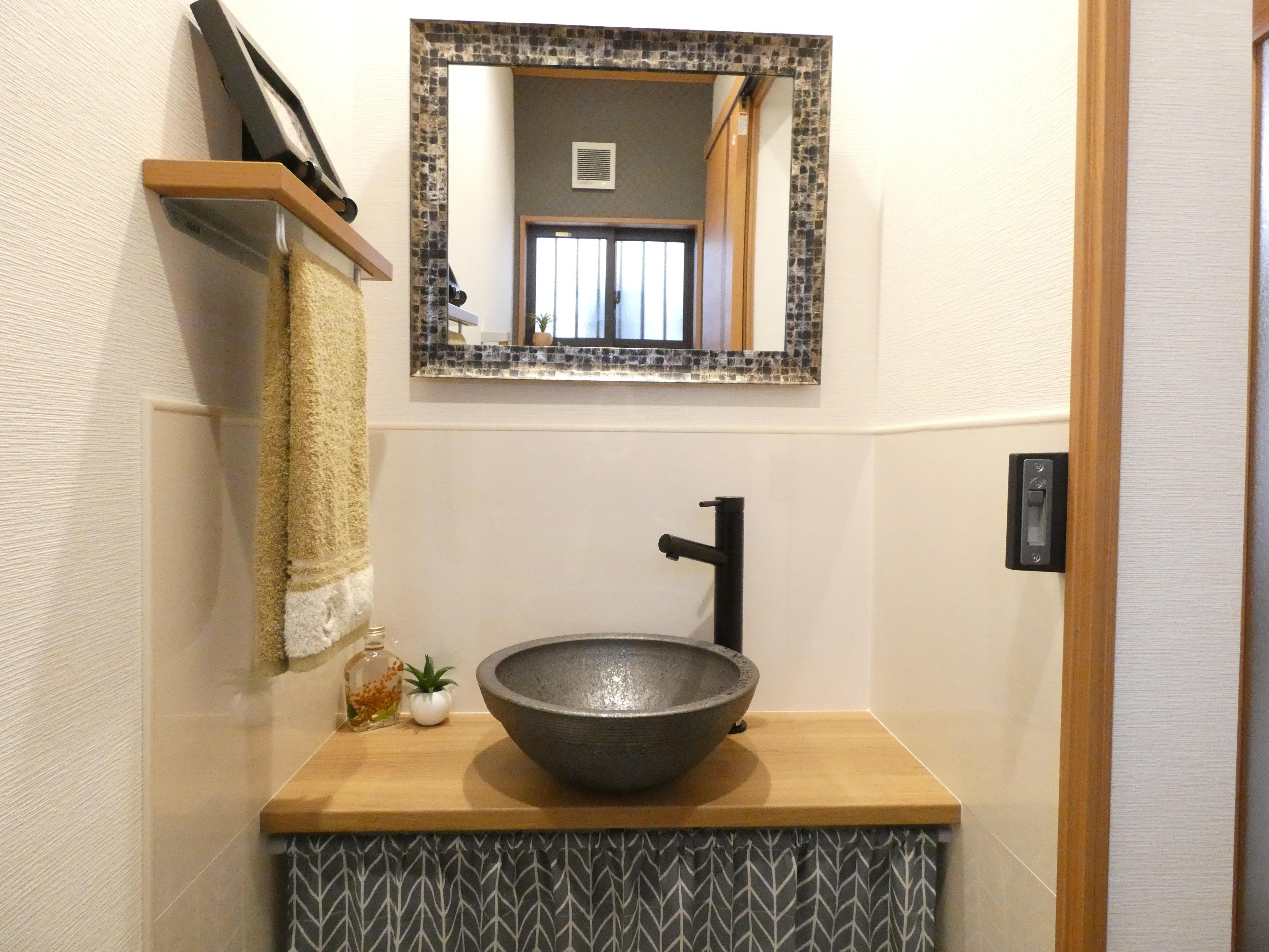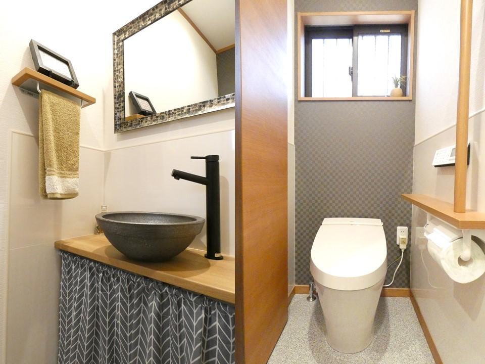 毎日使うトイレが素敵な和のテイストになり、衛生面も良く、お手入れもしやすくなり喜んで頂き嬉しく思います。お客様のお持ちだった鏡が手洗いスペースをさらに和の彩りを添えて素敵です!