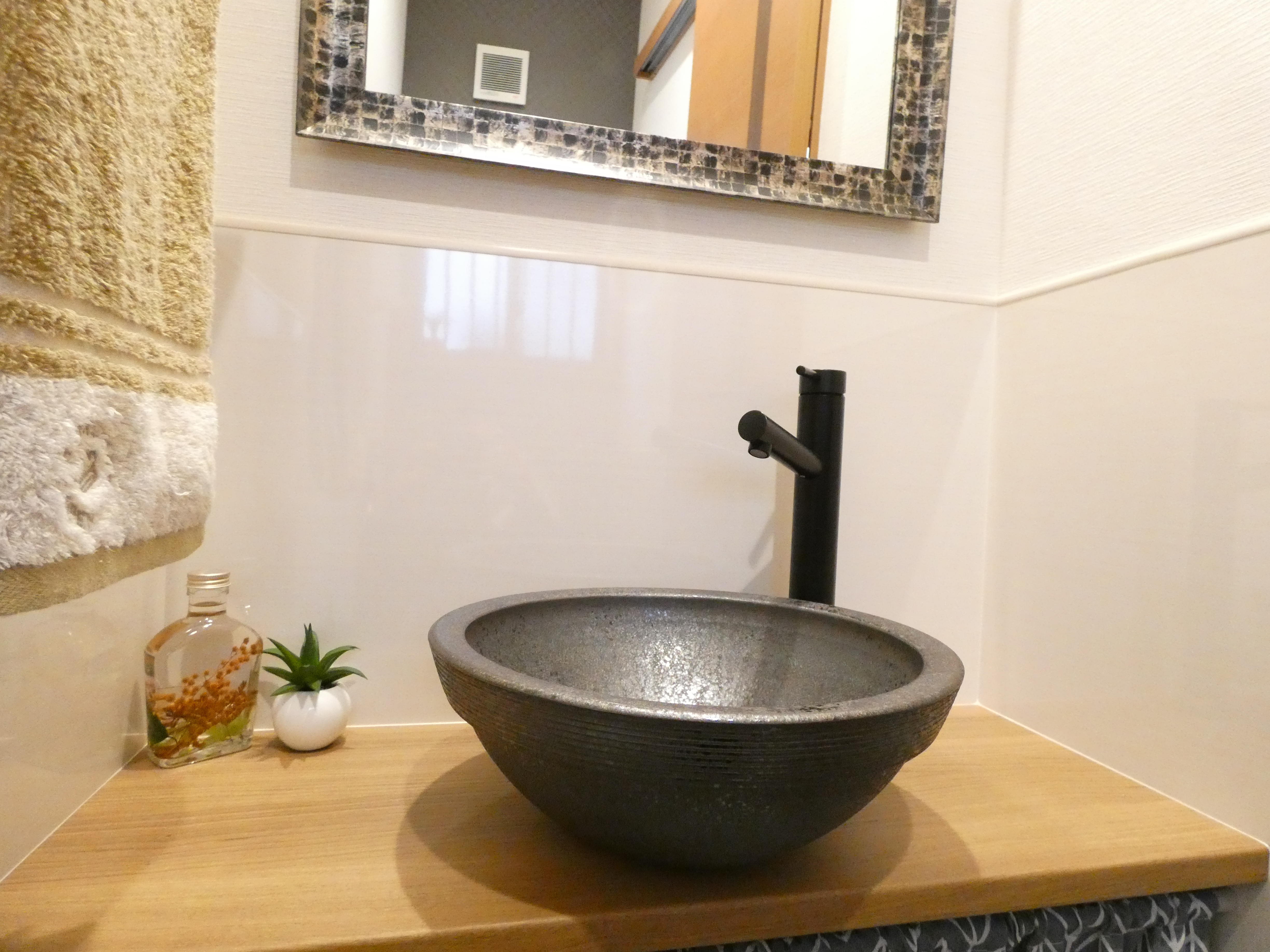 目指していた和なテイストのトイレになり満足です。手洗いのボウルと水栓が黒いので少しお手入れが必要ですがこの雰囲気を出してくれているので頑張って掃除出来ています。壁にパネルがあることにより掃除がラクになりました。また、節水トイレになったので光熱費も少し少なくなった気がします。ありがとうございました。
