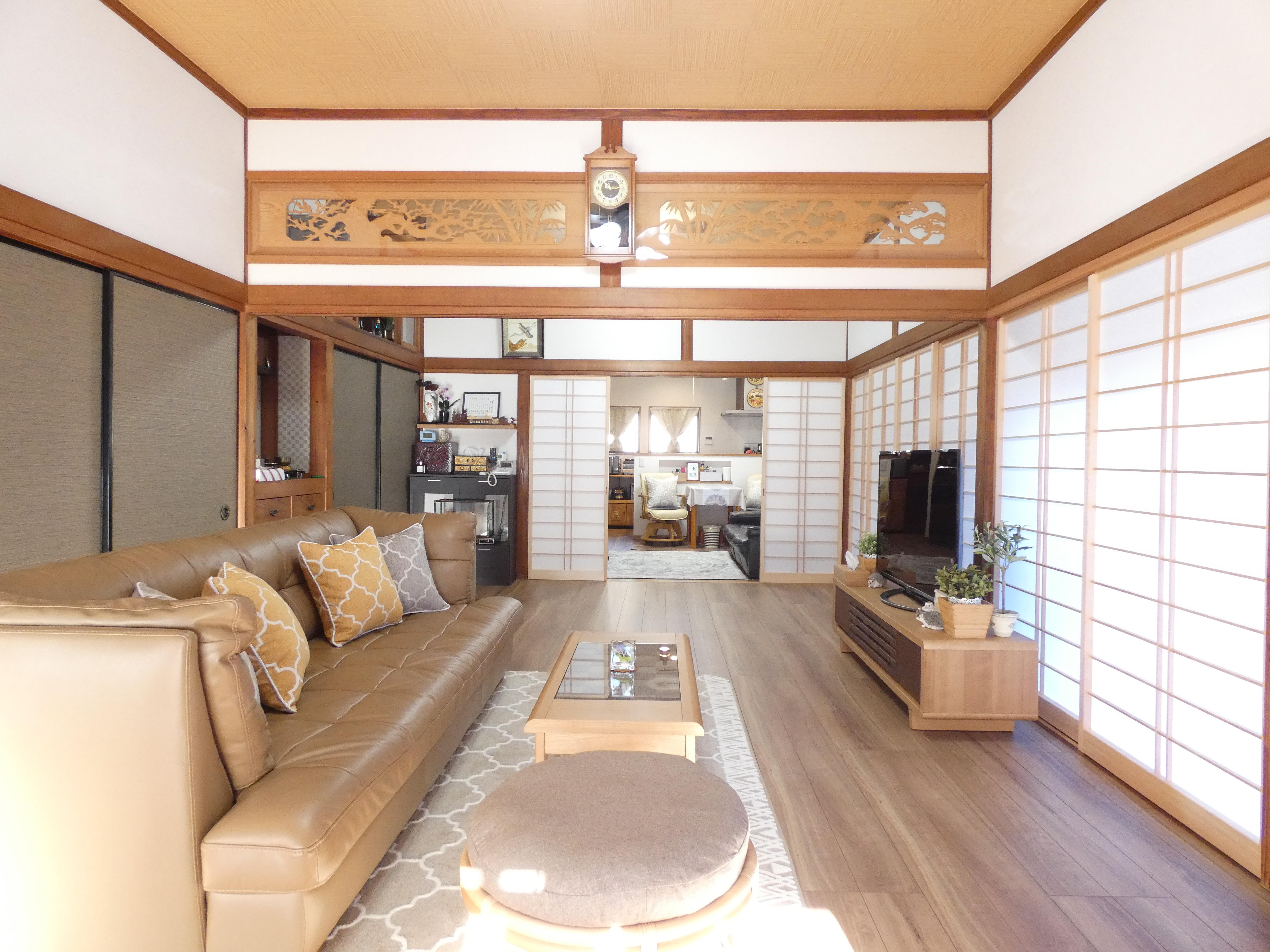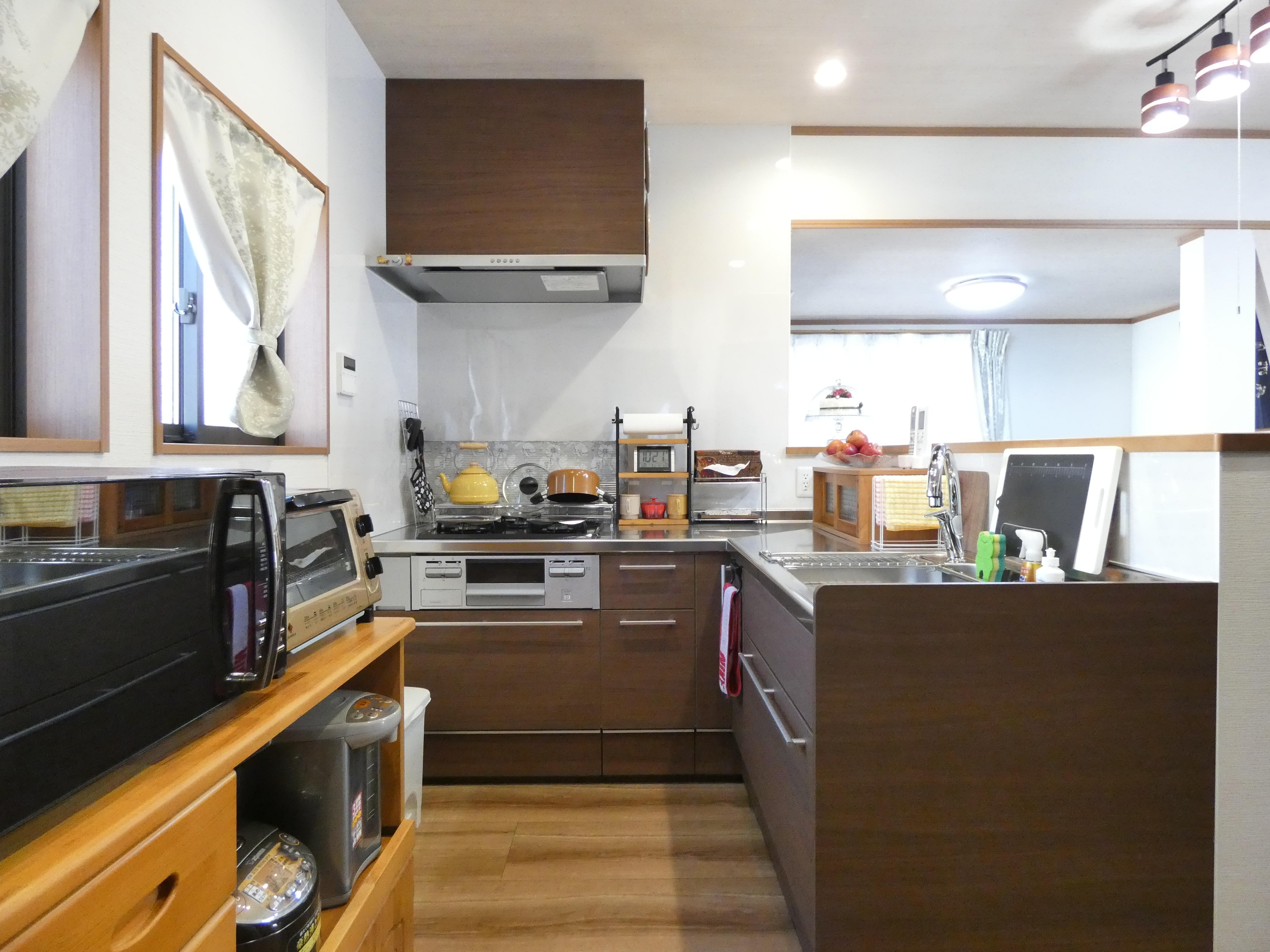 当初は対面キッチンにしなくても良いと思っていましたが、実際キッチンに立ってみると目の前の視界も広々で和室の奥にある緑も見ながらとても良気持ちの良い空間になりました。お気に入りの茶箪笥も設置できるスペースを作ってもらいとても良かったです。有難うございました。