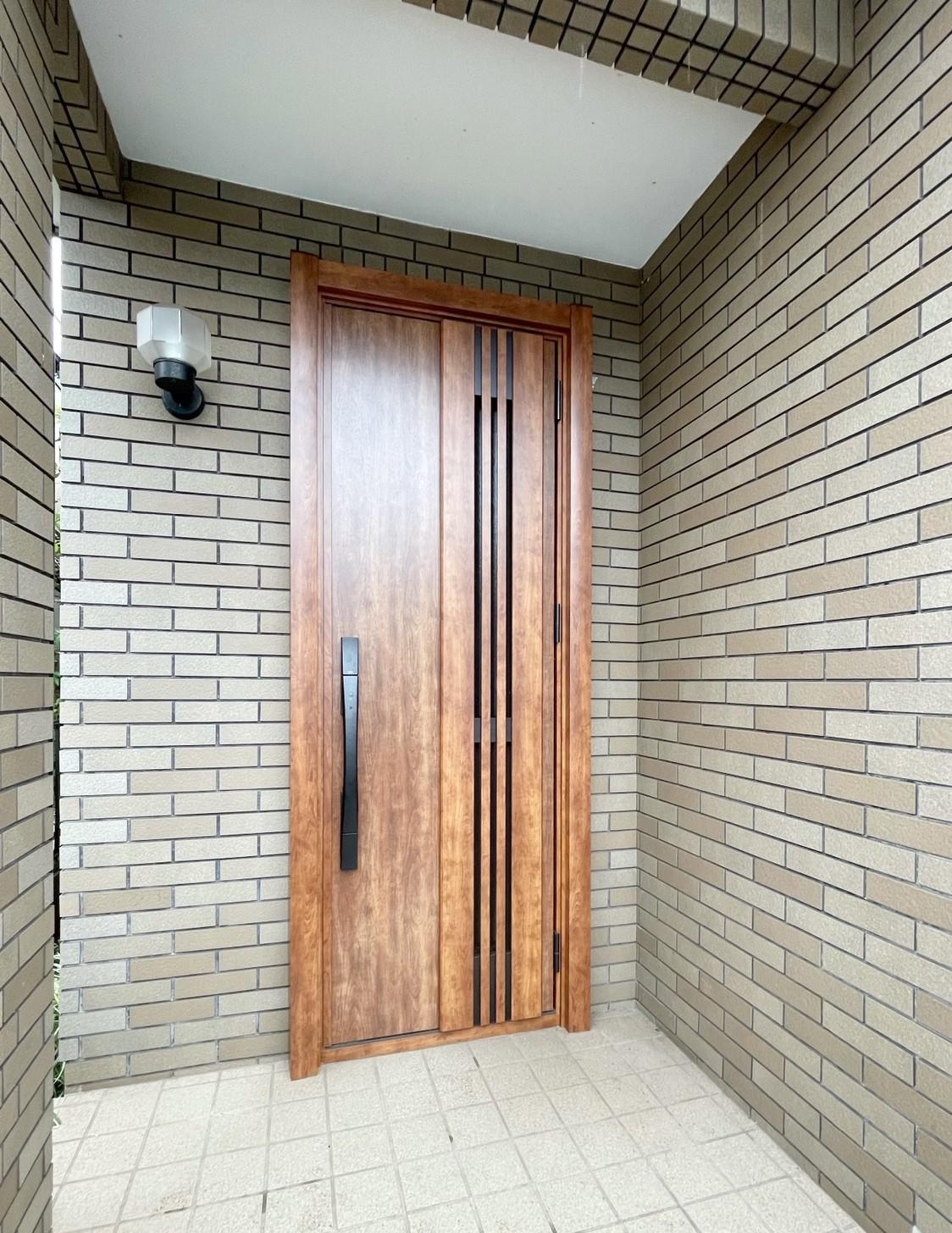家の顔の玄関を一新!アルミ色から柔らかでスタイリッシュな木目調へ!