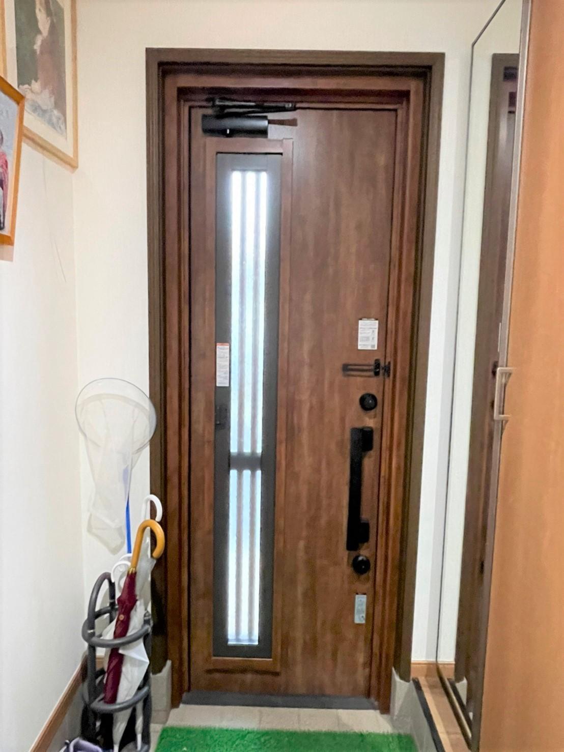 この度はご依頼いただき、ありがとうございました。素敵な木目調の玄関になりました。 採風ドア付きで春から秋にかけて風を通せることが家全体が心地よい空間になると思います。 カードキ―のCAZASも便利に重宝して頂ければと思います。 ご主人様の包容力と奥様の素敵な笑顔が印象に残るリフォームでした!