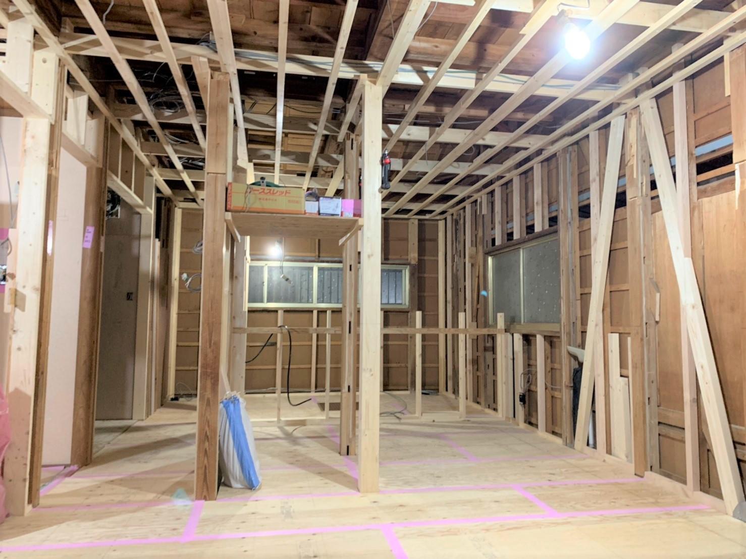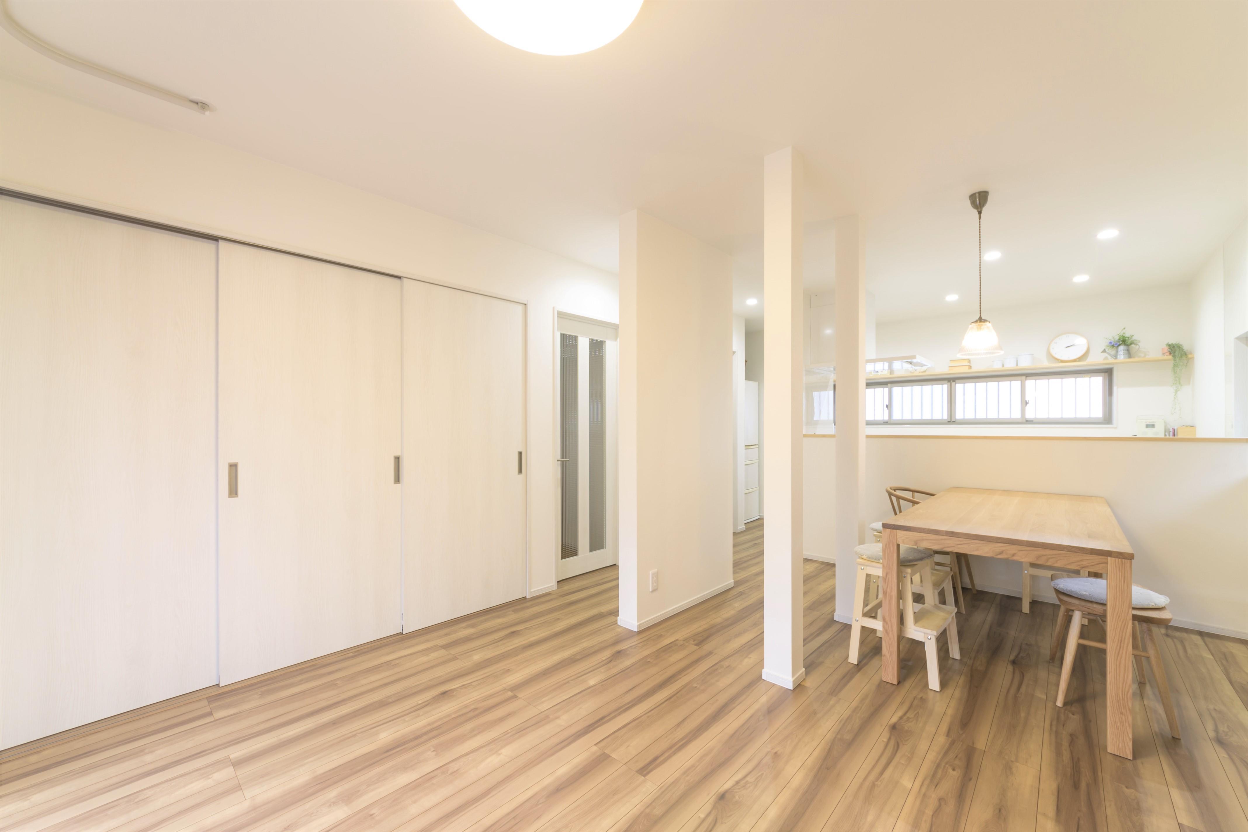 キッチン全体がリビングからも見れるようになりお子様も楽しく、キッチンからの見晴らしも良いので奥様も安心できるスペースになりました。キッチンと和室が分離していましたが、一つのLDKにしたことで解放感も増しました。無くした壁の分の耐震補強も行いました。