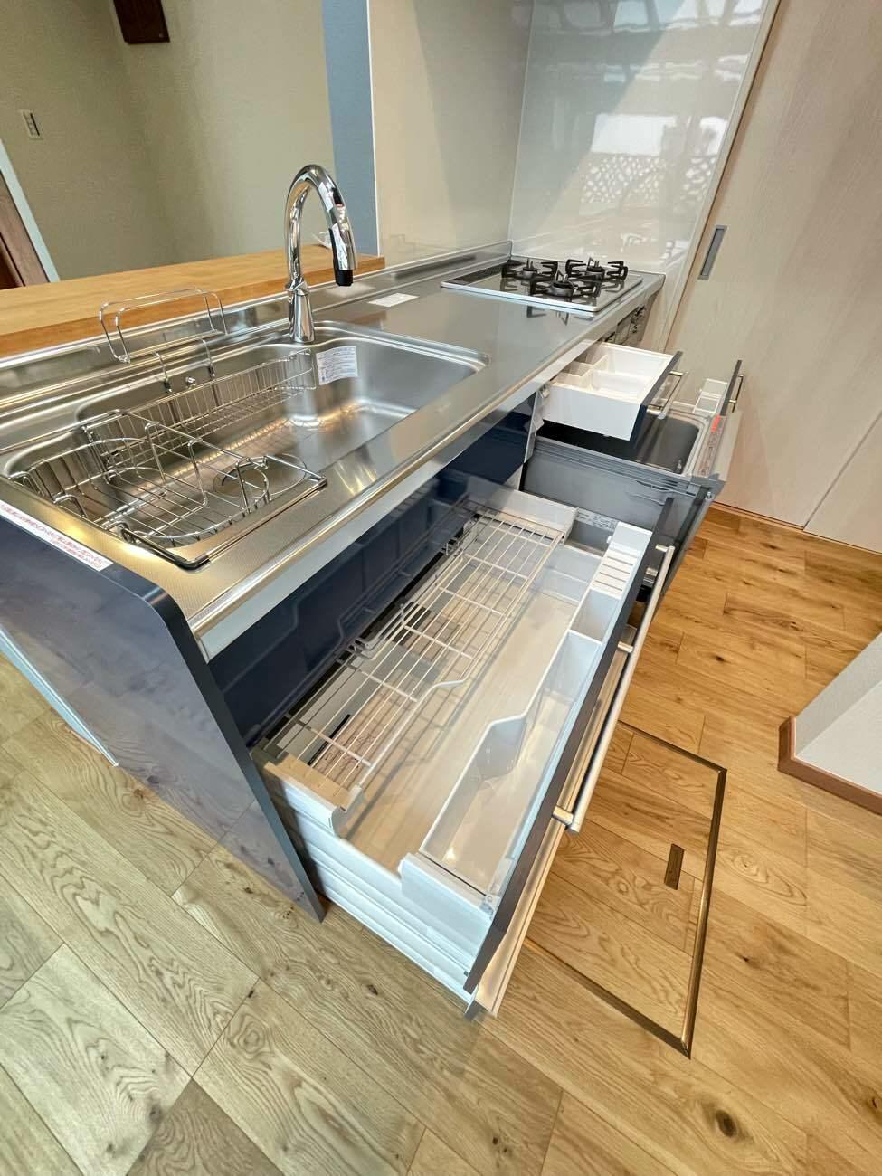 タッチレス水栓や食洗機もあることで家事の時間の短縮とお掃除時間の短縮が出来るキッチンになりました。